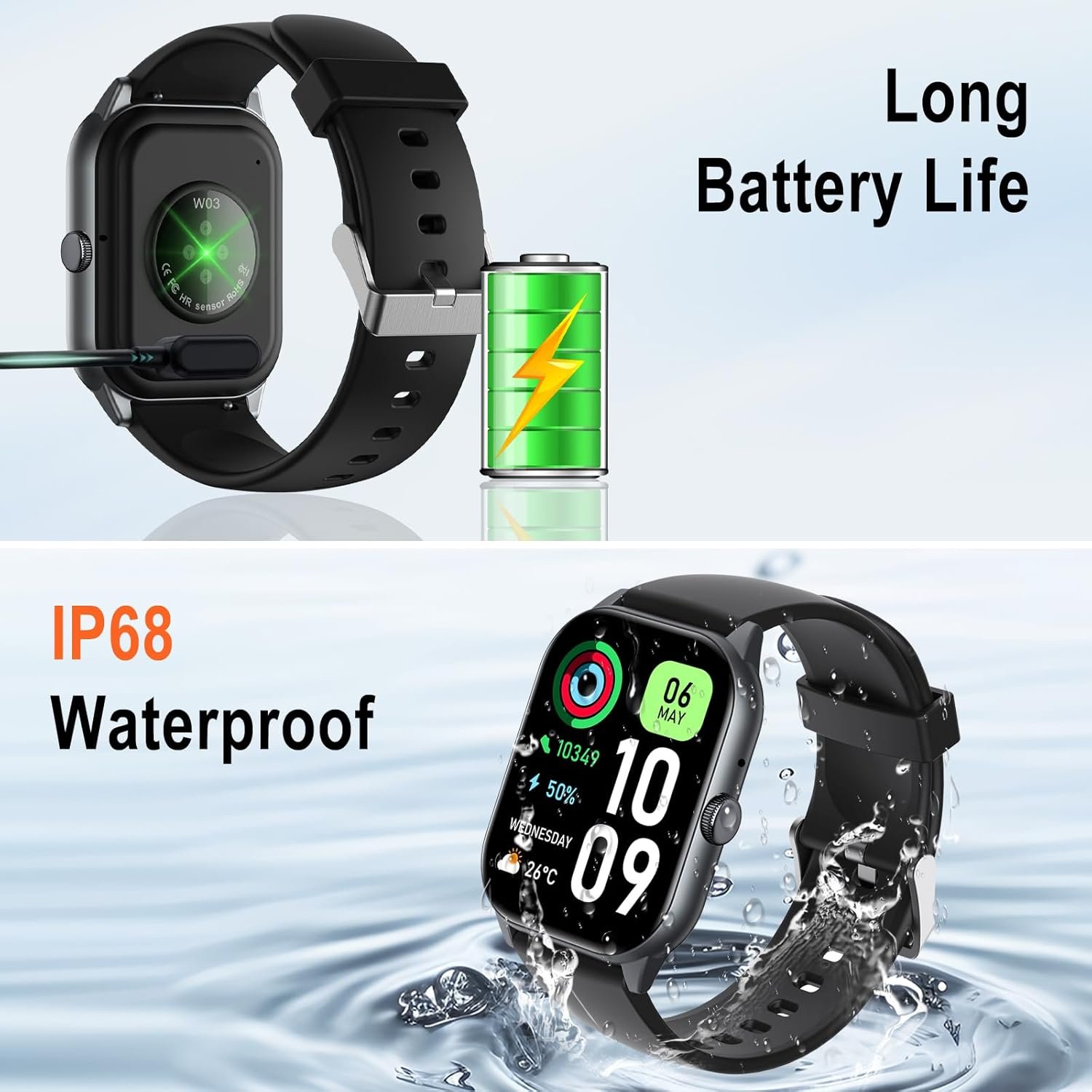 100+ Sports Modes & IP68 Waterproof:With over 100 sports modes (walking, running, cycling, soccer, etc.), this Waterproof Smartwatch tracks steps, distance, calories, and other key data in real time. IP68 waterproof rating allows use in swimming, showering, or rainy days—ideal for fitness enthusiasts and daily use.