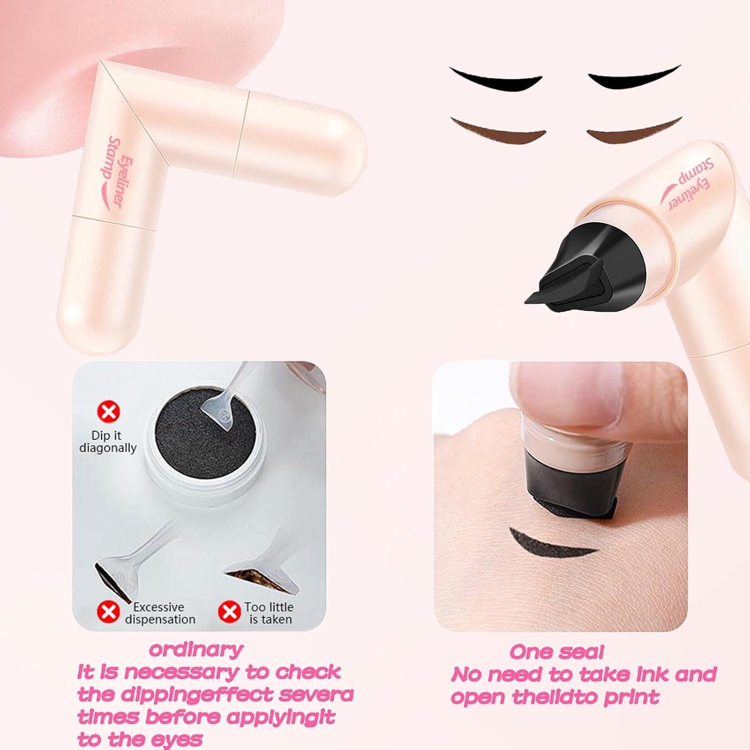Tips:When using the eyeliner stamp pen,do not hold it perpendicular to your face.Apply it as close as possible to the inner corner of the outer eye. Wait 2-3 seconds for the waterproof film to form. After use, replace the cap to prevent ink evaporation.