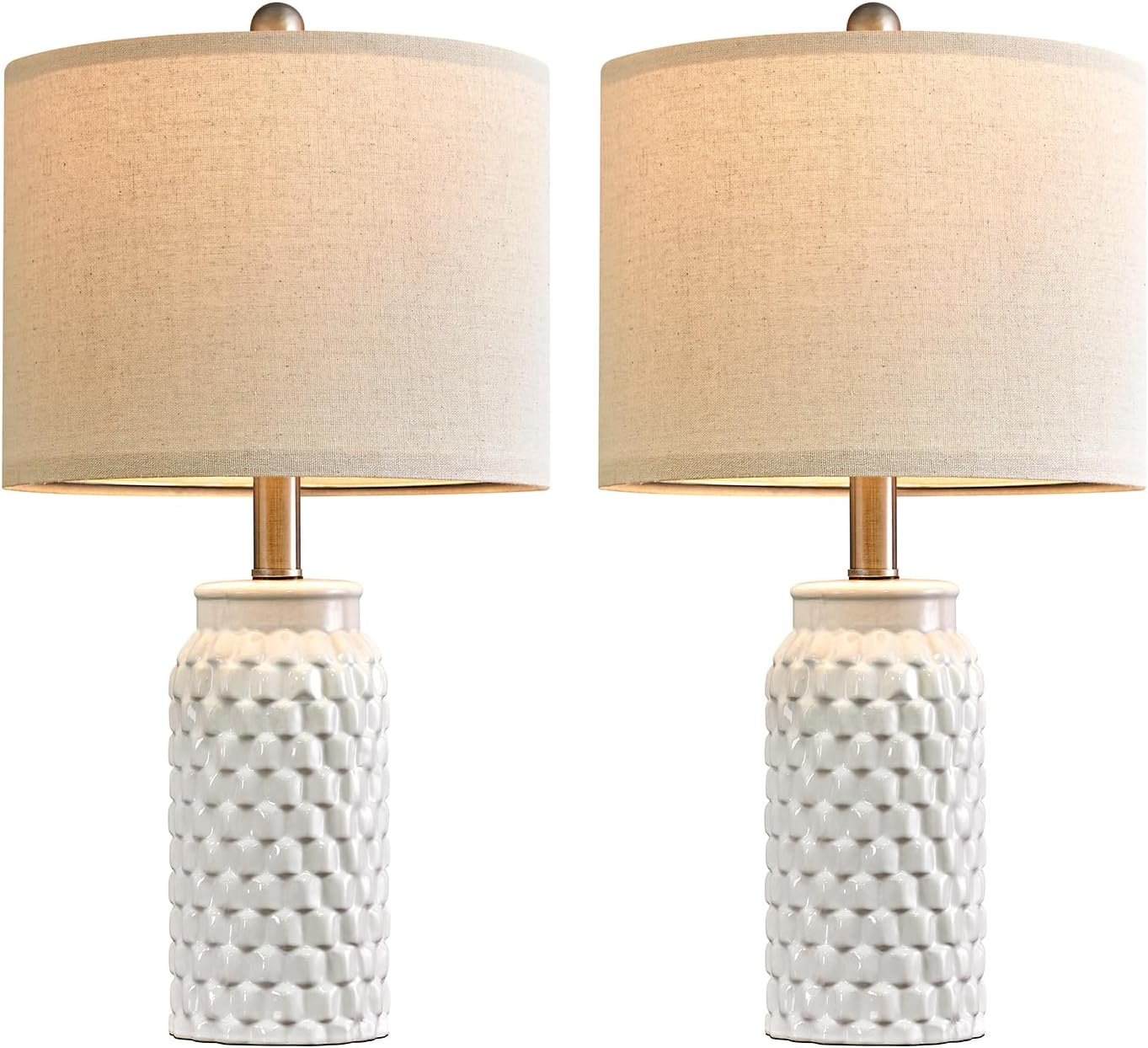 20.5″ White Modern Ceramic Bedside Lamp Set of 2 for Bedroom Decor Farmhouse Table Lamp for Living Room Office Dorm