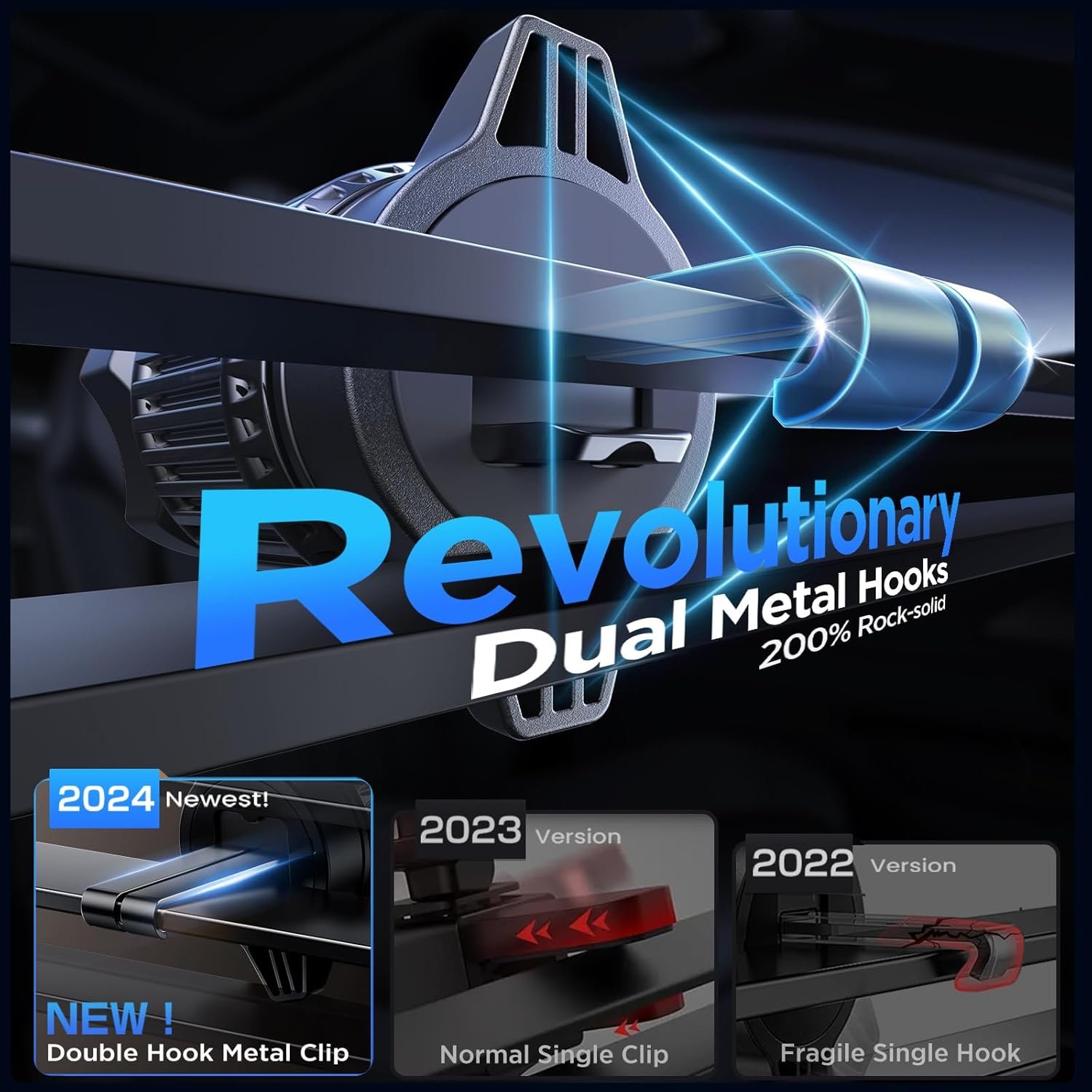3 in 1 Ultimate Car Mount – Leading in innovation, we introduce our eagerly awaited car phone holder. Featuring a 360° rotating suction base for easy side-to-side adjustments without reinstallation. Our unique double hook metal clip protects air vents from scratches and offers unparalleled stability, enhancing your device’s security by 500%. Designed to adapt to different driving angles while maintaining stable and consistent visibility.