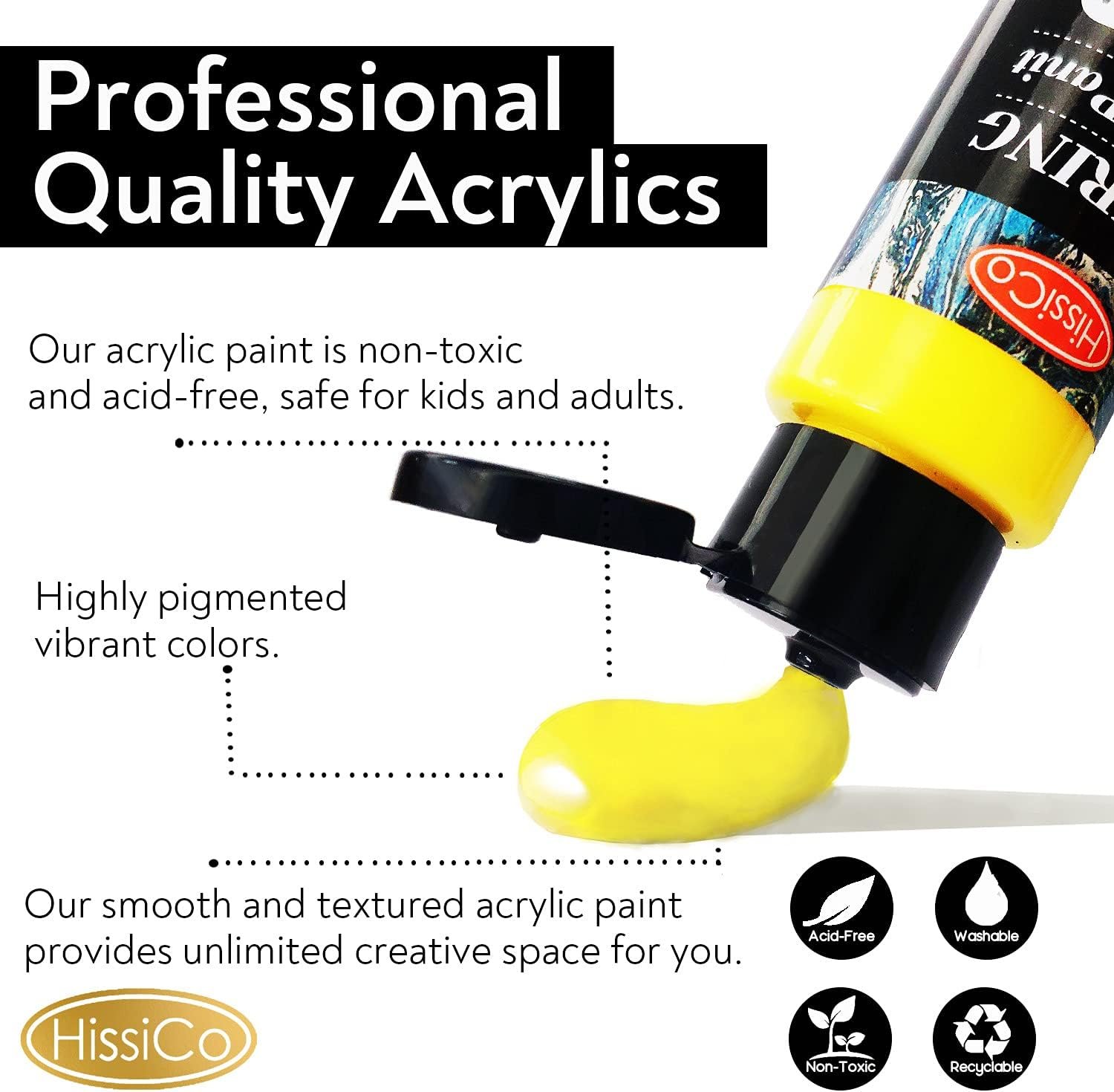 🎨Safety guarantee & High quality- Made of premium paint material, conforming to ASTM D-4236 and EN71 standards,HissiCo acrylic paint set is in rich pigment, creamy, non toxic and safe for adults, teens and kids’ creative art painting time