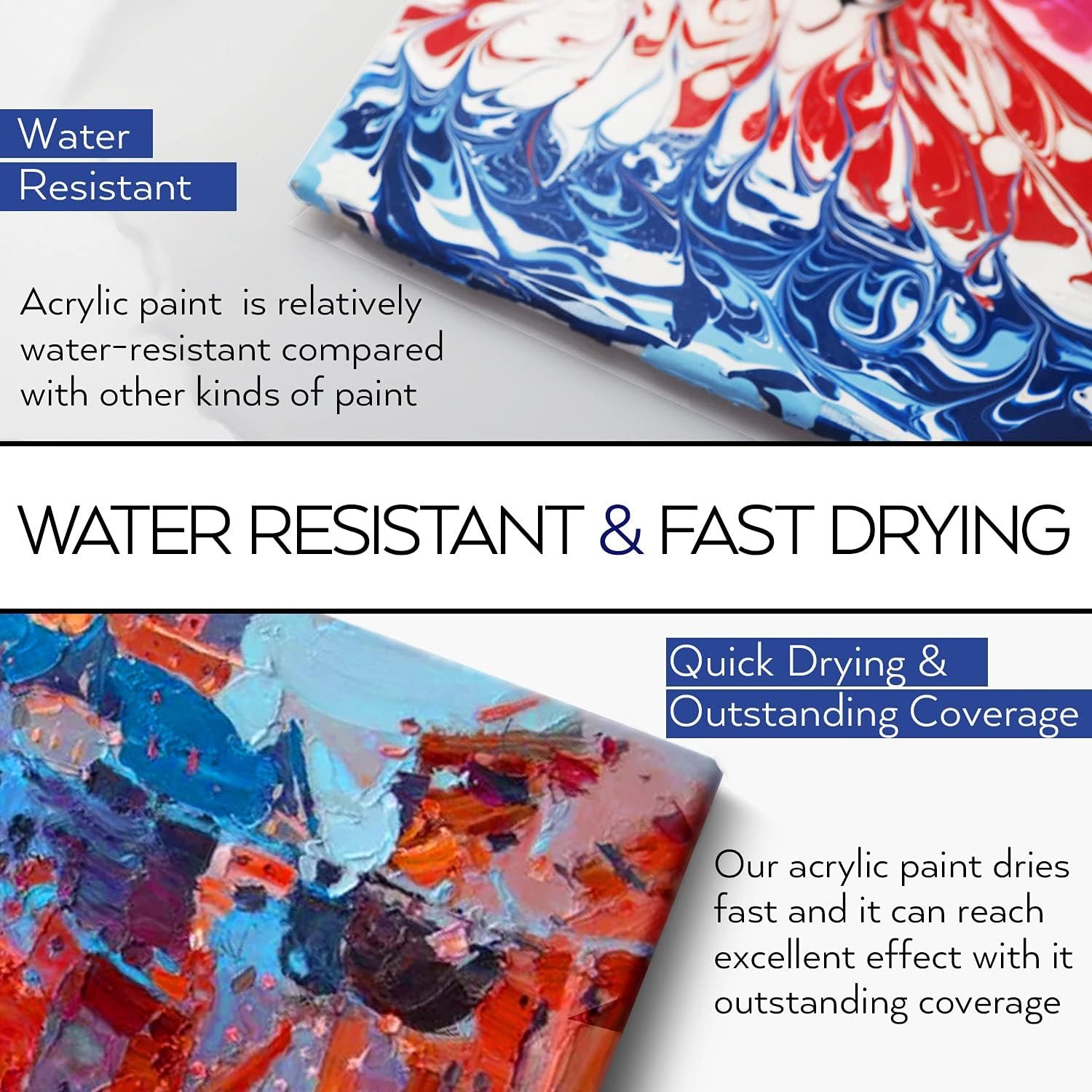 🎨Easy to Use & Store- The acrylic paint set in flip-top squeeze bottles makes it easy to control the flow while applying the paint to arts painting. Comes in a sturdy nice flip-lid cardboard box, the paint set will be easy to store and safe keeping