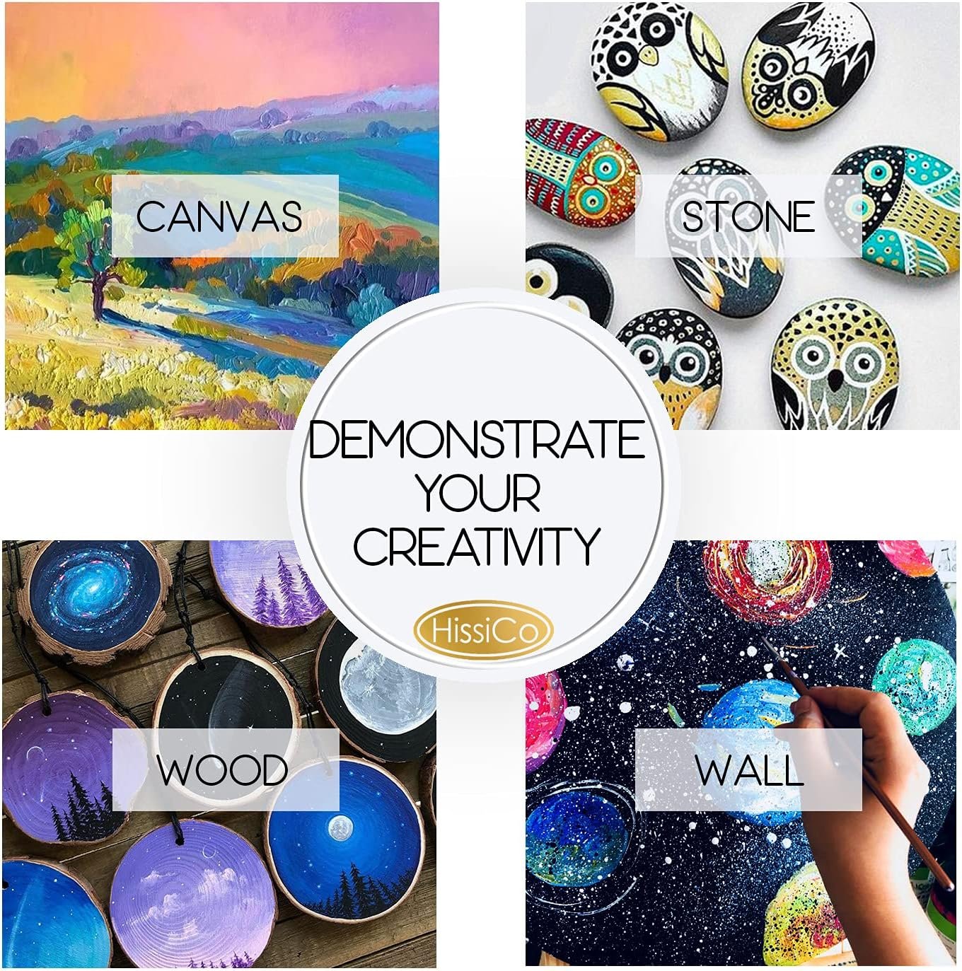 🖌Multifunctional Acrylic Paint Set- HissiCo acrylic paints are versatile in canvas art, painting, scrap booking and even nail arts, suitable for most surfaces, including stretched canvas, wood, glass, card decorating, plastic, craft foam, ceramic, decorative wallpaper, terracotta, blackboard easel, paper and tin