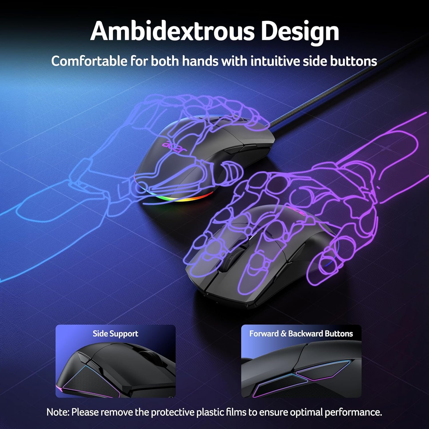 【Advanced Programmable Buttons】Take control with 8 programmable buttons and full macro editing via the driver. Remap commands, assign complex macros, and fine-tune DPI settings on this computer gaming mouse. Dedicated Forward and Back side buttons help execute faster in-game actions in FPS battles, MOBA team fights, or everyday navigation. 📌Note: Click “Apply” to save changes. For driver download and installation, refer to the Installation Manual (PDF).