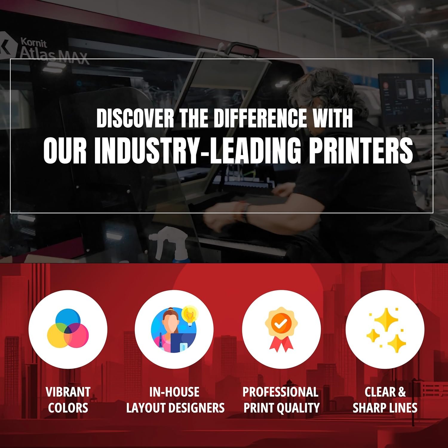 Our custom tee shirts design your own print utilize state-of-the-art Kornit Atlax Max & HD6 printers that ensure vibrant colors & sharp details. With our advanced printing technology, City Shirts offers high-quality print that is durable & long-lasting, making your design look on-point.