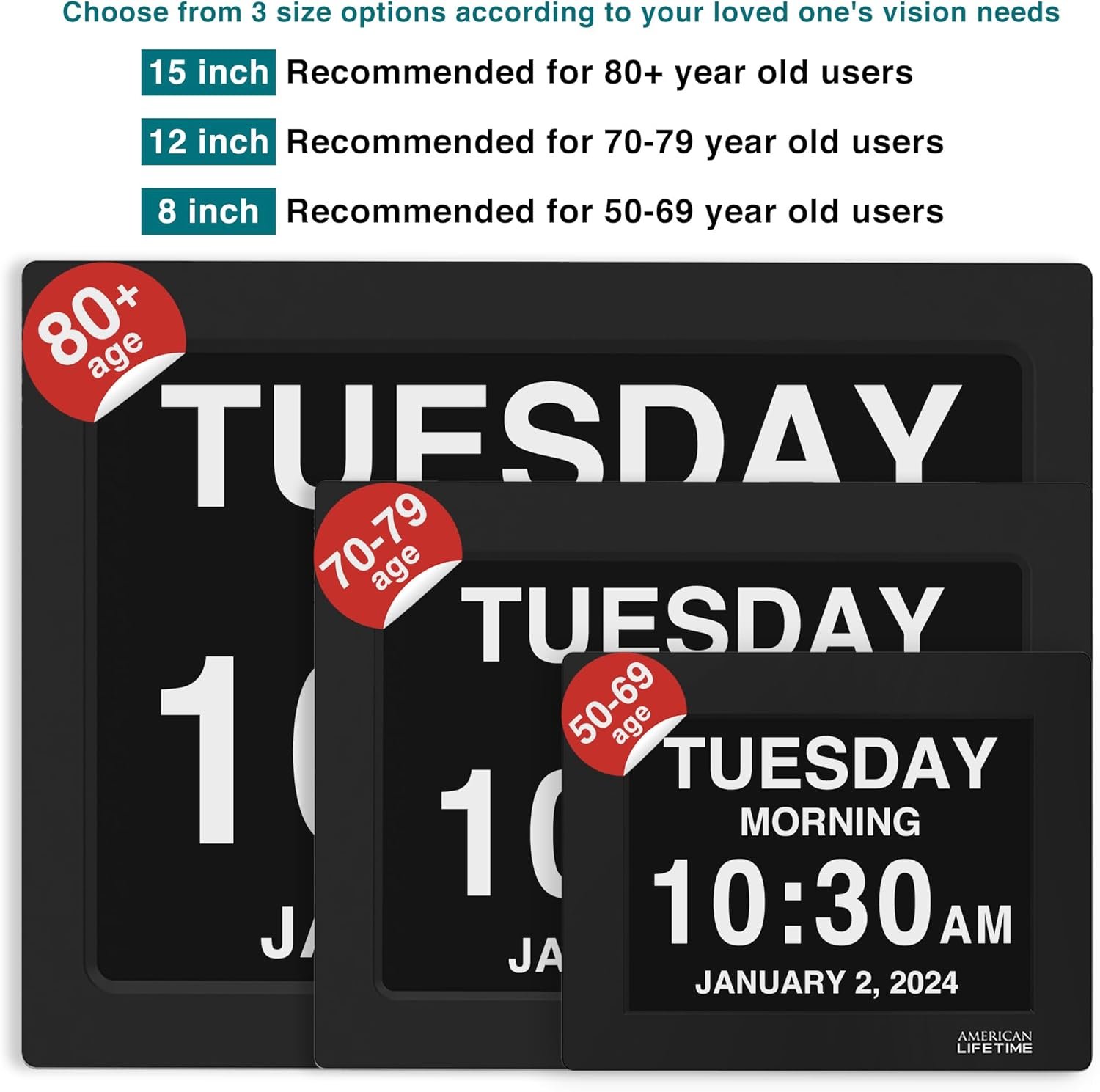 At American Lifetime, you won’t find any talk of aging, memory loss or dementia on our products or packaging. That’s because we’re not about what’s been lost. We’re about reminding older folks of all they are still holding onto, and everything worth preserving. We’re a U.S based company and source high-quality components for our products. The screens for our Day Clocks are imported from Japan, which makes our clocks exceptionally clear and easy to read.