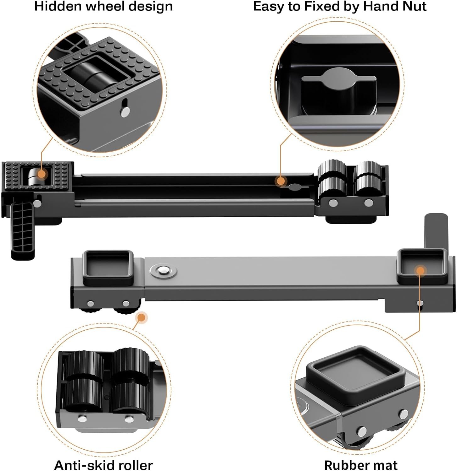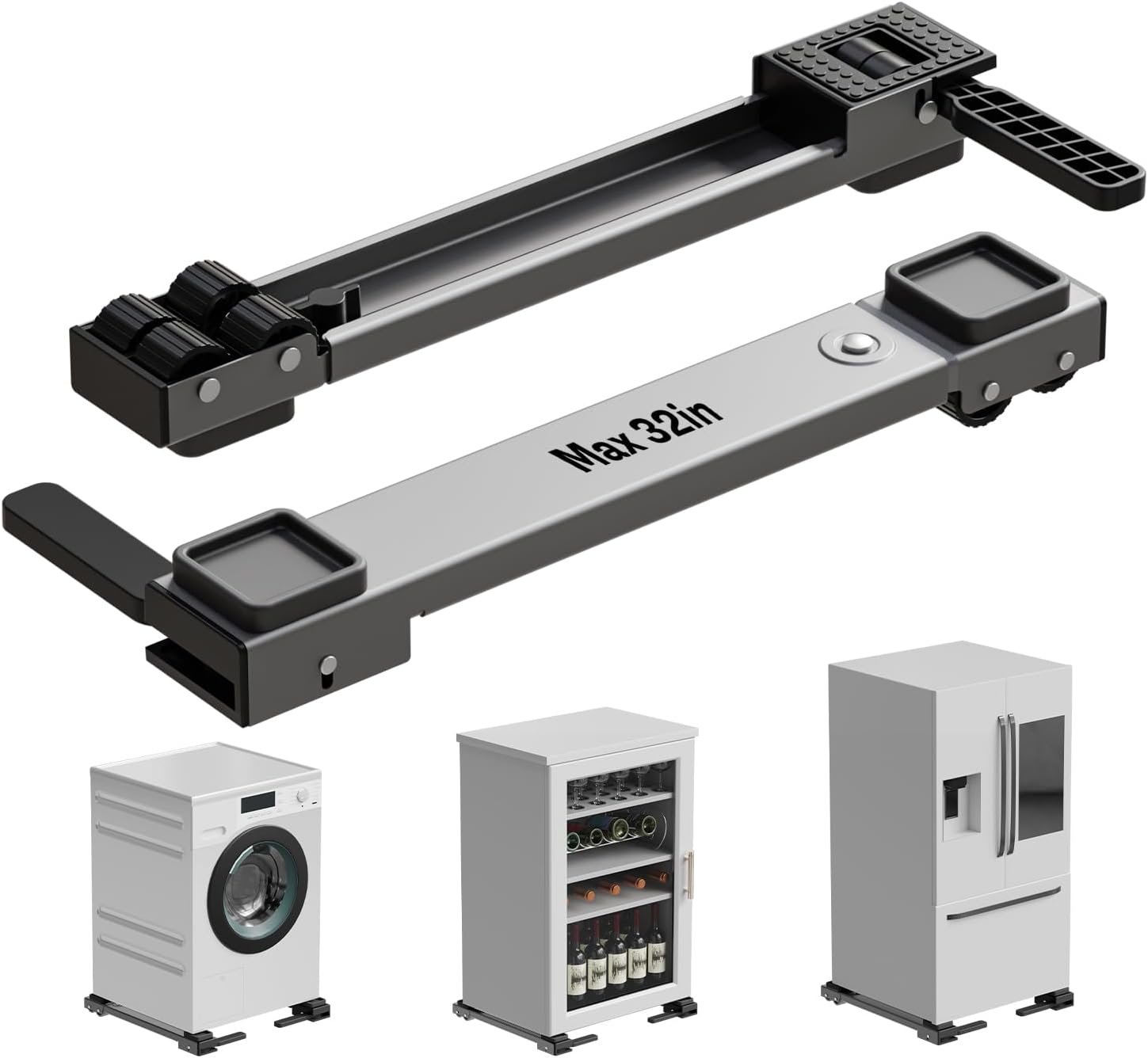 Freely Adjustable Dimensions: This stretchable appliance roller with adjustable length from 20’’-32’’ inches, which can meet the need of carrying different sizes of appliances and furniture at home. The washer and dryer slides easily for easy cleaning and won’t make your laundry room feel cluttered