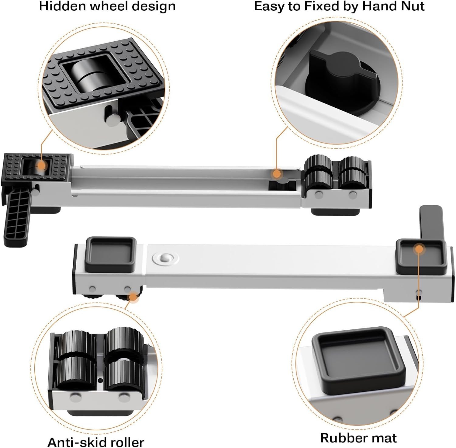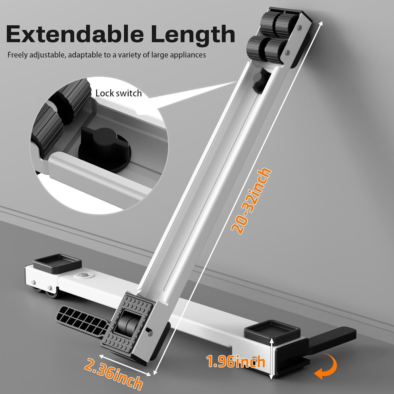 Freely Adjustable Dimensions: This stretchable appliance roller with adjustable length from 20’’-32’’ inches, which can meet the need of carrying different sizes of appliances and furniture at home. The washer and dryer slides easily for easy cleaning and won’t make your laundry room feel cluttered