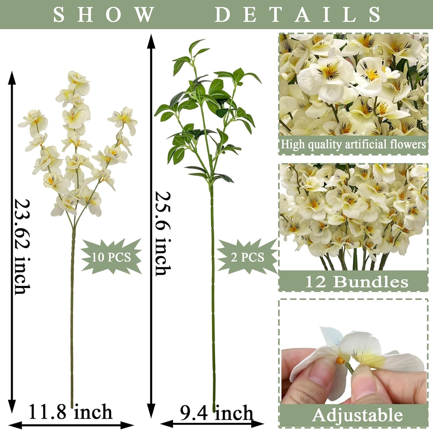 Artificial Flower Stems Bundle, White and Green, for Indoor Outdoor Home Decor (12, White)