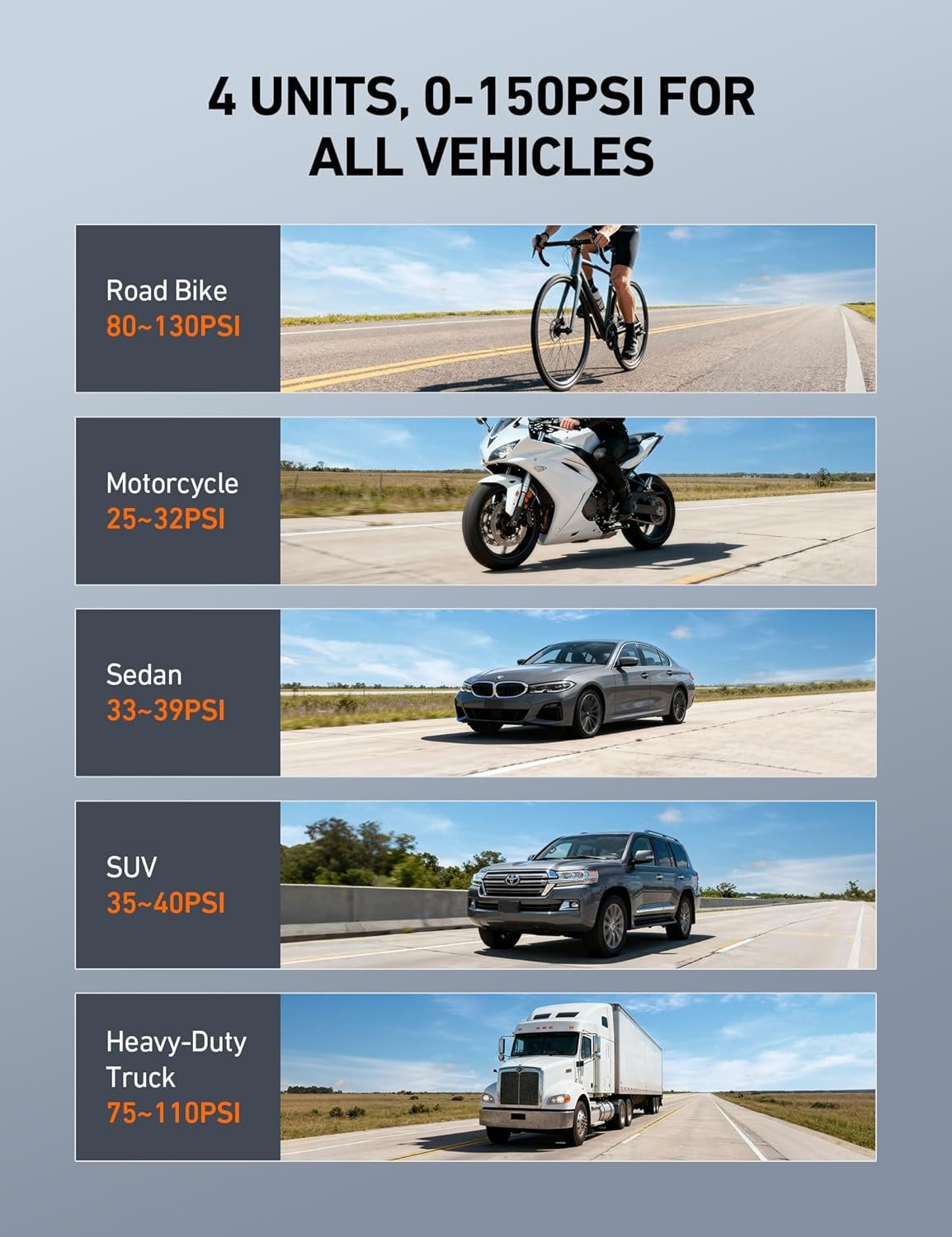 Accurate Readings: The gauge’s illuminated nozzle easily forms a seal with tire valve stems, giving quick and accurate readings in 0.1 increments; 4 units settings with range: 0-150PSI / 0-10Bar / 0-10Kgf/cm² or 0-1000KPA.