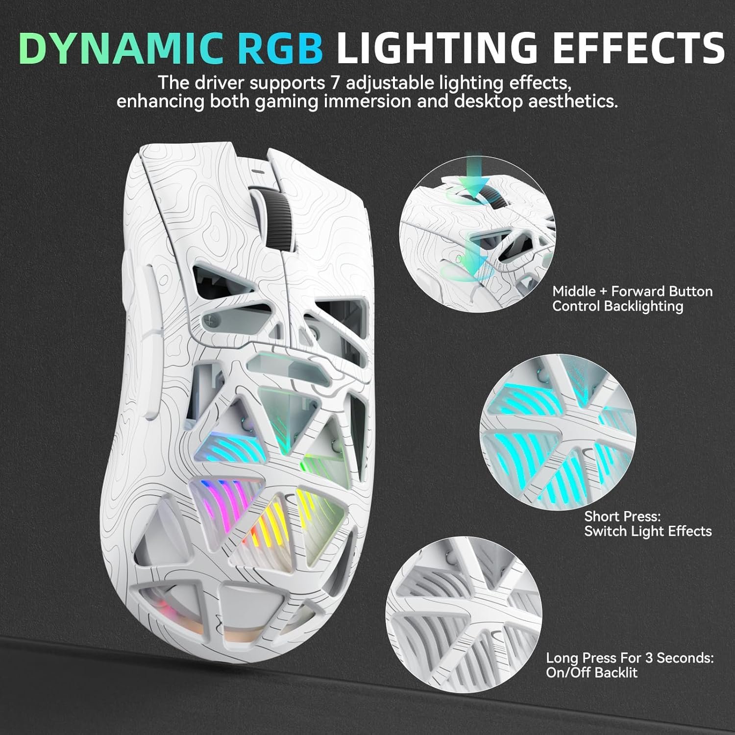 Dynamic RGB Backlighting: Elevate your setup with dynamic RGB custom lighting modes—this mouse gamer features a hollowed-out structure that highlights vibrant RGB effects, instantly creating an immersive atmosphere. Use the AULA driver(soaidriver.com) to customize brightness, speed, or sync with your gaming/work environment for a personalized style. Energy-efficient design keeps the vibrant colors shining while maintaining long-lasting battery life for rechargeable wireless mouse—whether you’re gaming all night or crafting a unique desktop aesthetic, it handles it all with ease