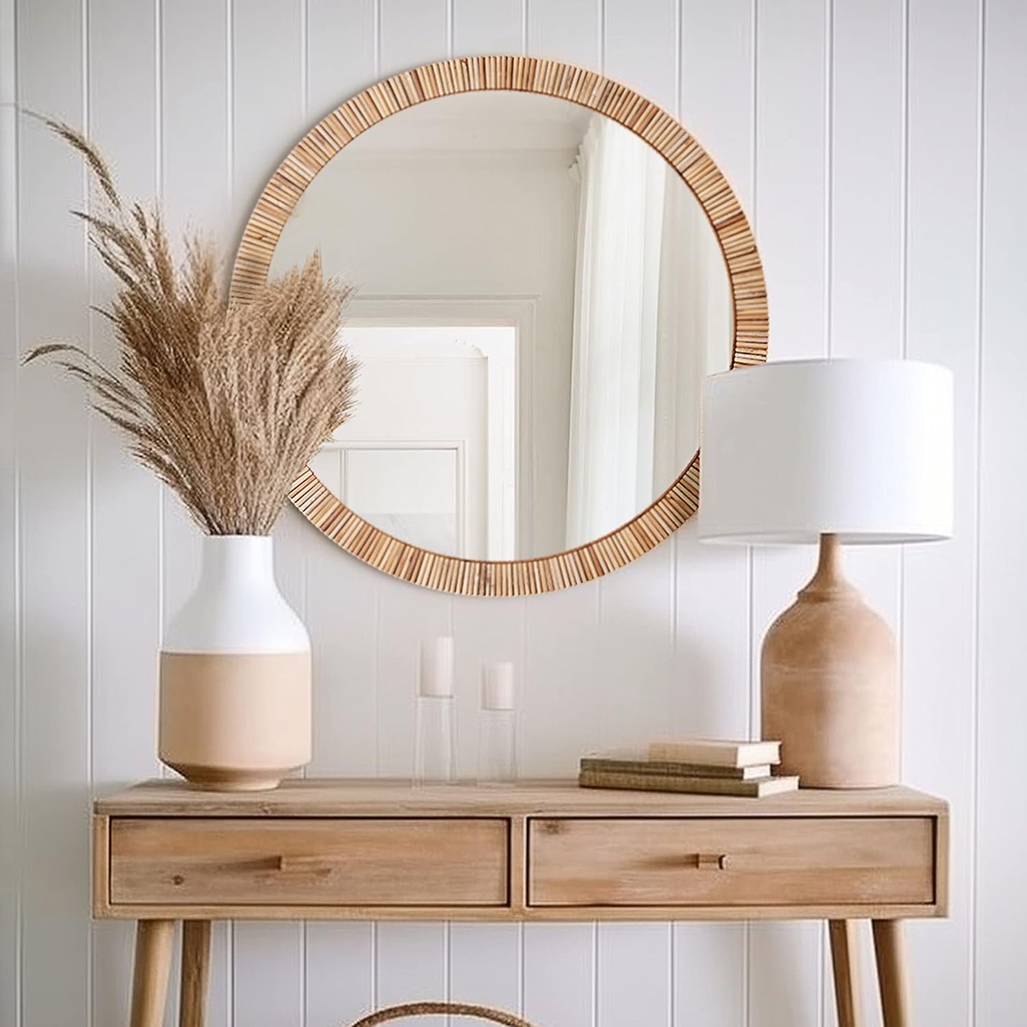 Expertly Crafted – Our rattan mirrors for wall offer superior HD clarity to always see yourself in the best possible light. The lightweight design and sturdy construction make it effortless to hang, allowing you to enjoy your beautiful circle hanging mirror in no time. Sturdy hooks on back. Screws and wall anchors included.