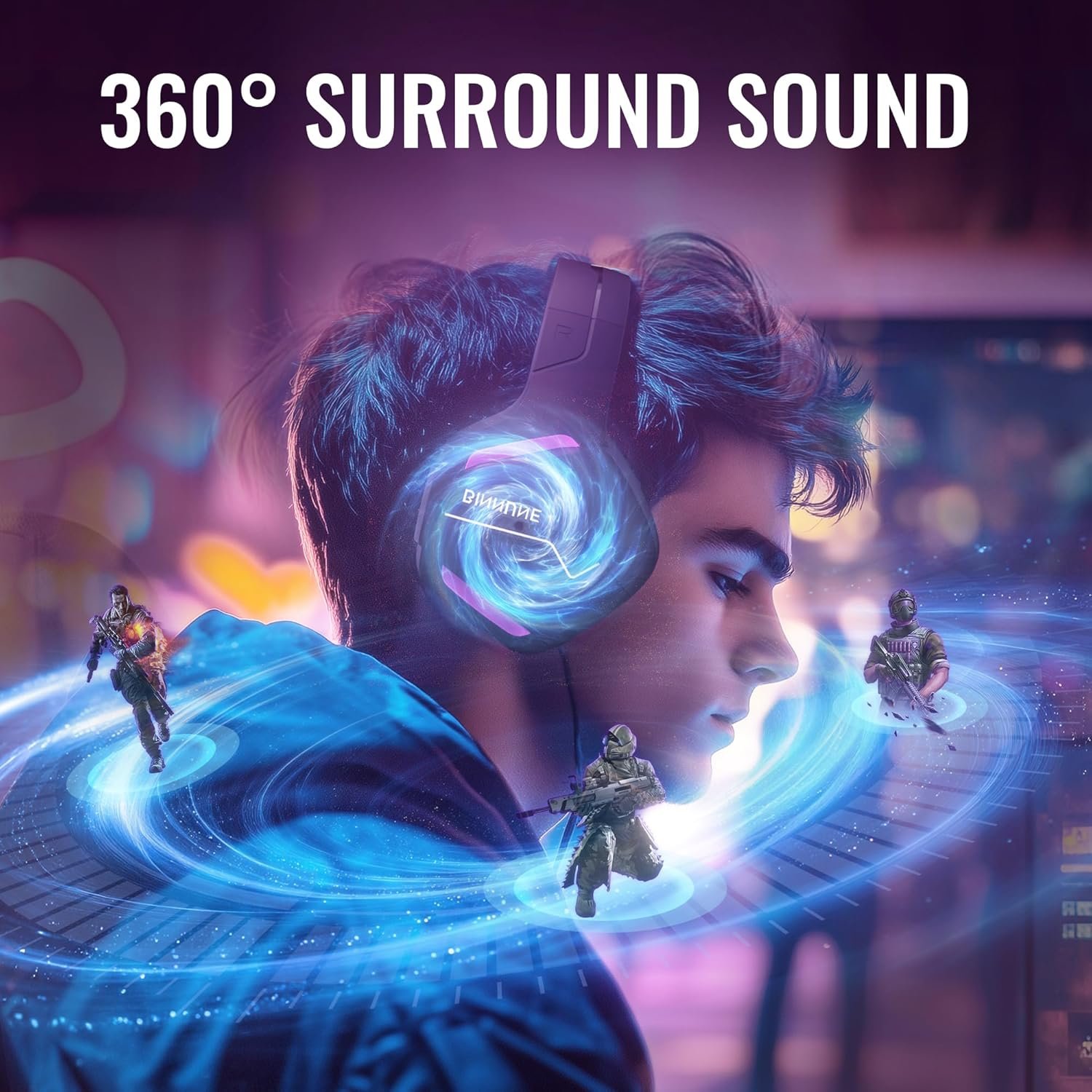 Premium 50 mm Hi-Fi Drivers for Immersive Sound: Equipped with large 50 mm dynamic drivers, our over ear headphones produce full, balanced sound — deep bass, crisp highs, and rich mids. Pinpoint footsteps and direction cues for greater immersion. A true gaming headset designed to amplify every detail and boost your win rate.