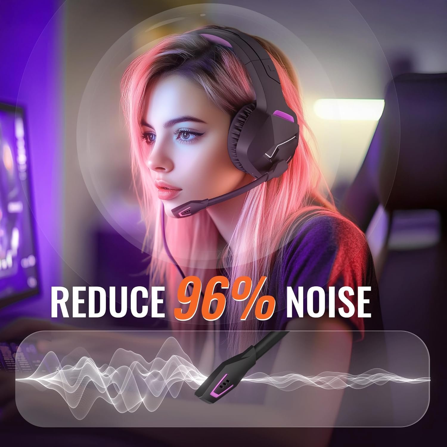 BINNUNE 2.4GHz Wireless Gaming Headset, Bluetooth 5.3 Gaming Headphones with Noise Canceling Mic, 120H Ultra-Long Battery, 50mm Drivers, Multi-Platform for PC / PS5 /PS4/ Switch/Mobile, Purple