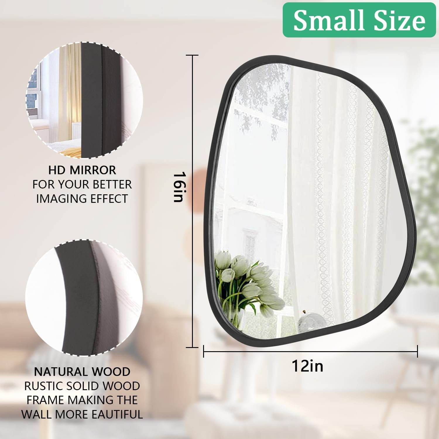 Black Asymmetrical Mirror Irregular Oval Wall Mirror Modern Wood Frame Unique Shape Wall Mounted Vanity Artistic Mirror Decorative for Living Room Bedroom Bathroom Entryway Large 16″x12″