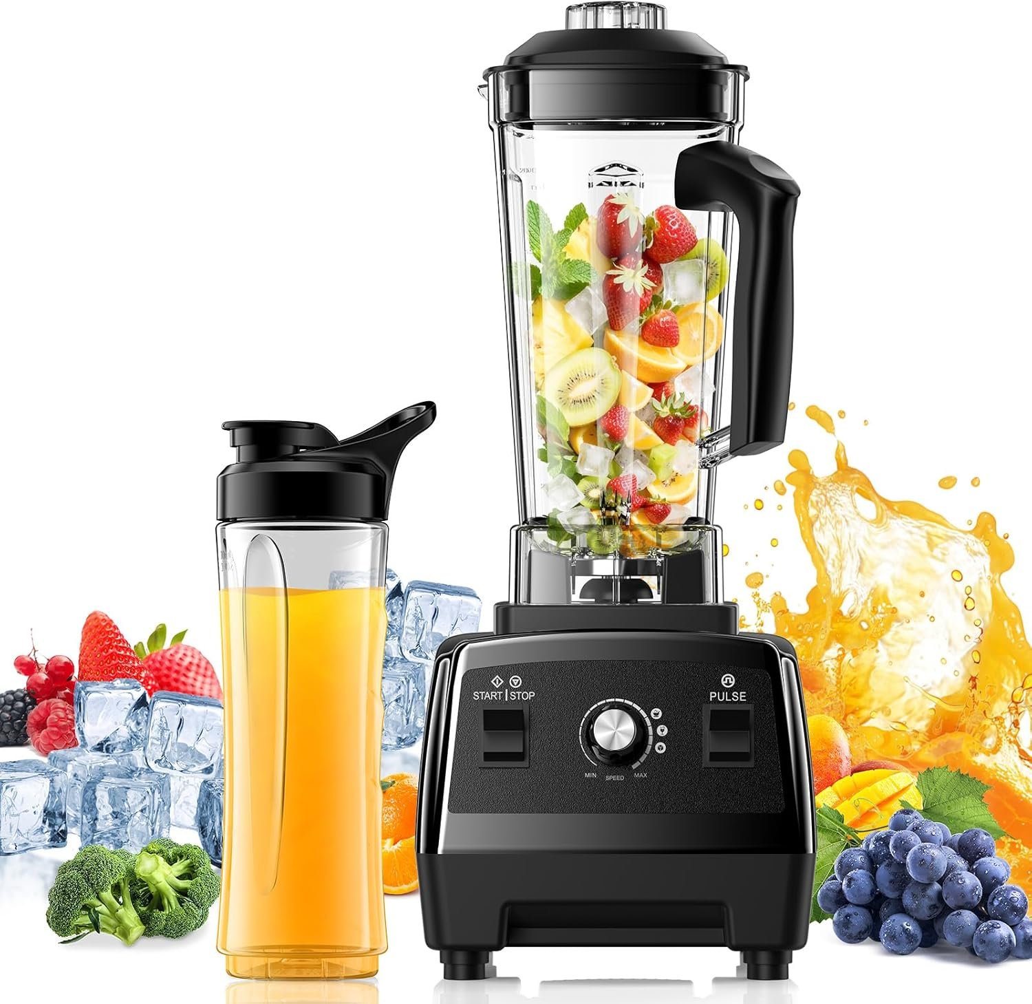 Large Capacity: Features a 68-ounce blending jar for processing multiple servings at once. Along with a 20-ounce portable cup, it offers convenient “blend-and-go” portability, perfect for making smoothies or juices.