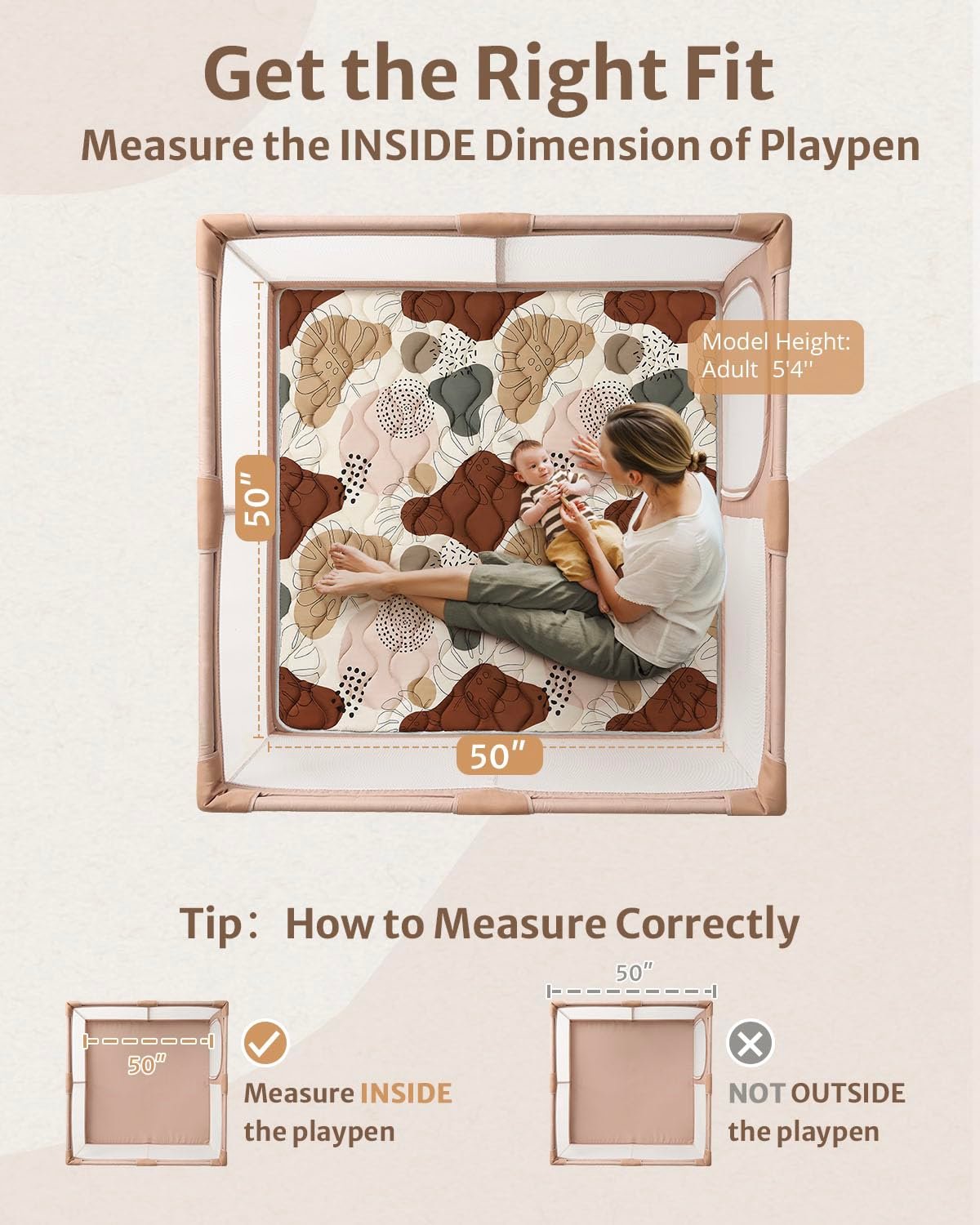 Perfect Fit & Versatile Use – Measuring 50×50 inches, this mat fits playpens with the same INSIDE dimensions. Also great for tents or indoor/outdoor play. Please measure your space or playpen for a proper fit. More sizes available for your need