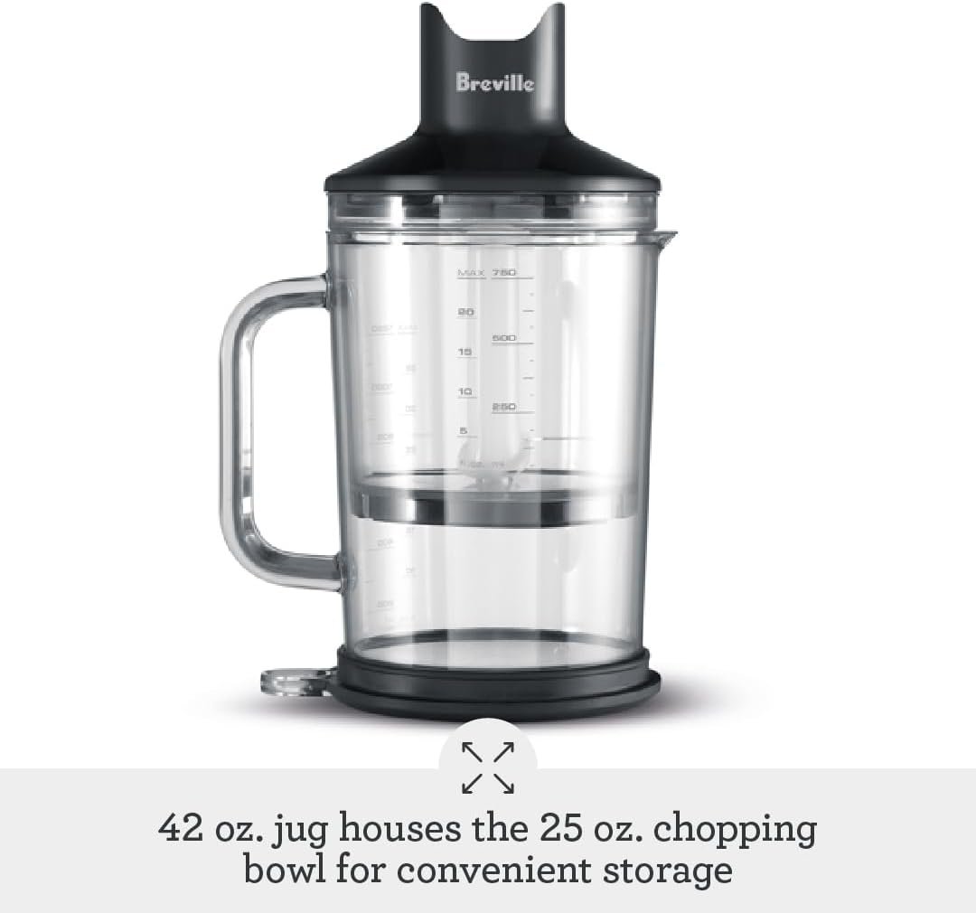 COMPACT STORAGE: Jug houses chopping bowl for convenient storage; This Breville blender fits easily in even smaller kitchens with limited space