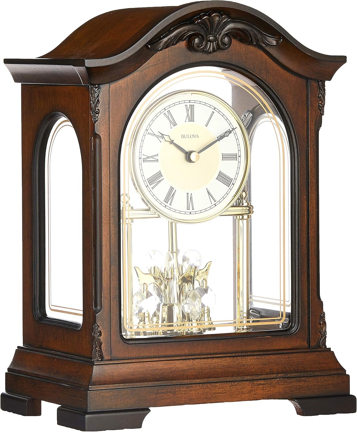 Durant. Solid Wood Case, Old World Walnut Finish. Decorative Carved Accents. Metal Dial. Decorative Screened Glass Front And Side Panels. Removable Clear Acrylic Back Panel. Westminster Melody On The Hour. Revolving Pendulum. 2.5Â X .5Â Engraving Plate Included. H: 11.5Â W: 8.25Â D: 5Â.