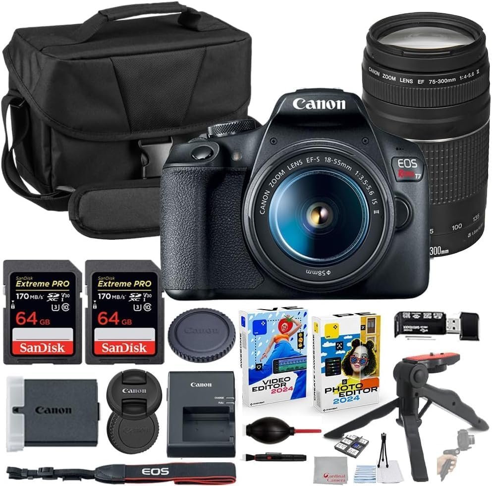 Canon EOS Rebel T7 DSLR Camera with 18-55mm & 75-300mm Lens Bundle with Canon 200ES EOS Shoulder Bag + 2X 64GB Extreme Memory Cards + Accessory Kit
