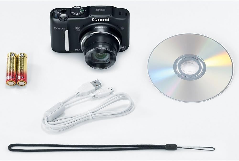 PowerShot SX160 IS Body, 2 AA-size Alkaline Batteries, Wrist Strap WS-800, USB Interface Cable IFC-400PCU, Digital Camera Solution CD-ROM.