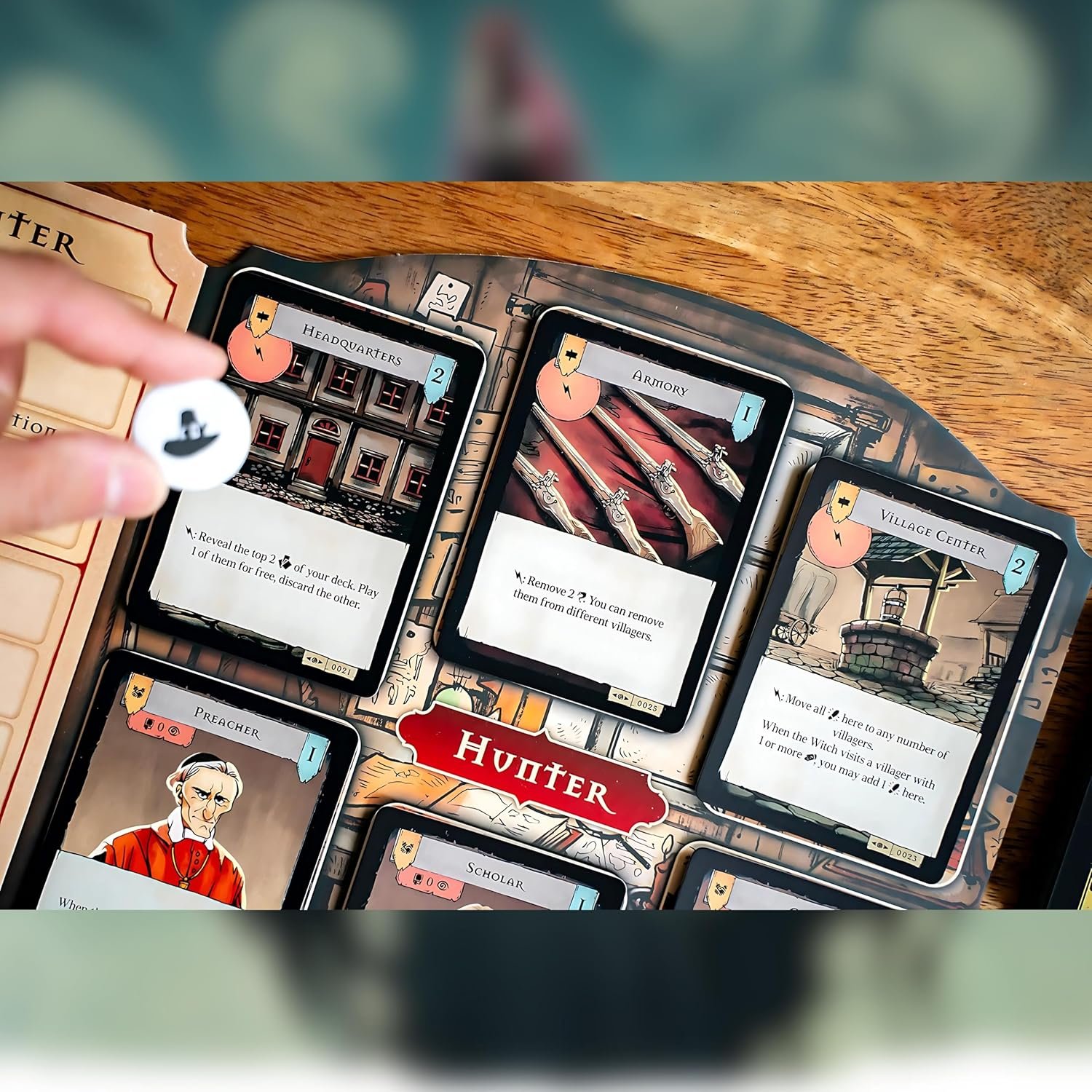 MYSTERY, INRIGUE, DECEIVE. THE ULTIMATE DUEL: As the Witch strives to complete a ritual, the Hunter tries to track the Witch down and find out its true identity. Both players access variable card decks with 50 cards each and use different resources to defeat the other side. Many tactics and strategies are possible and necessary to survive in this fight between the two powers.