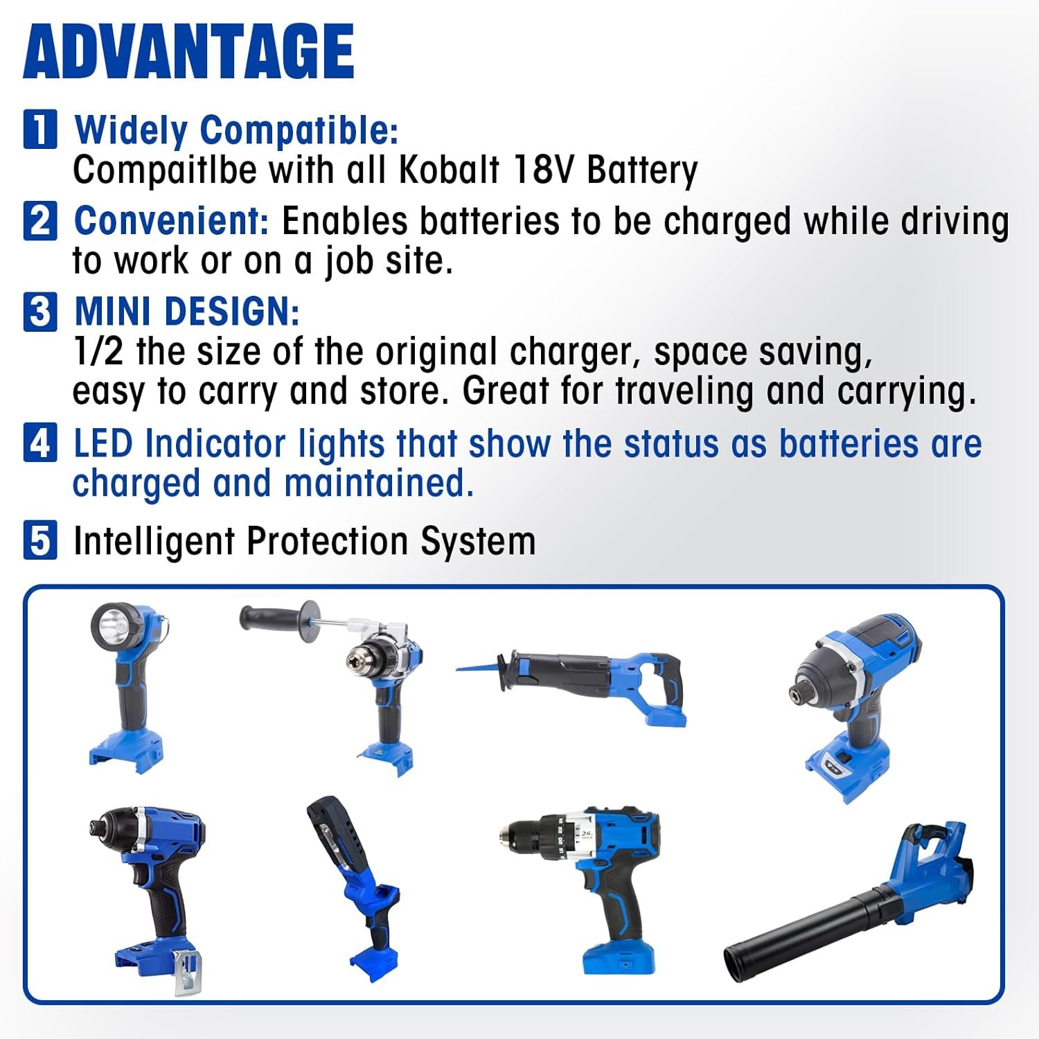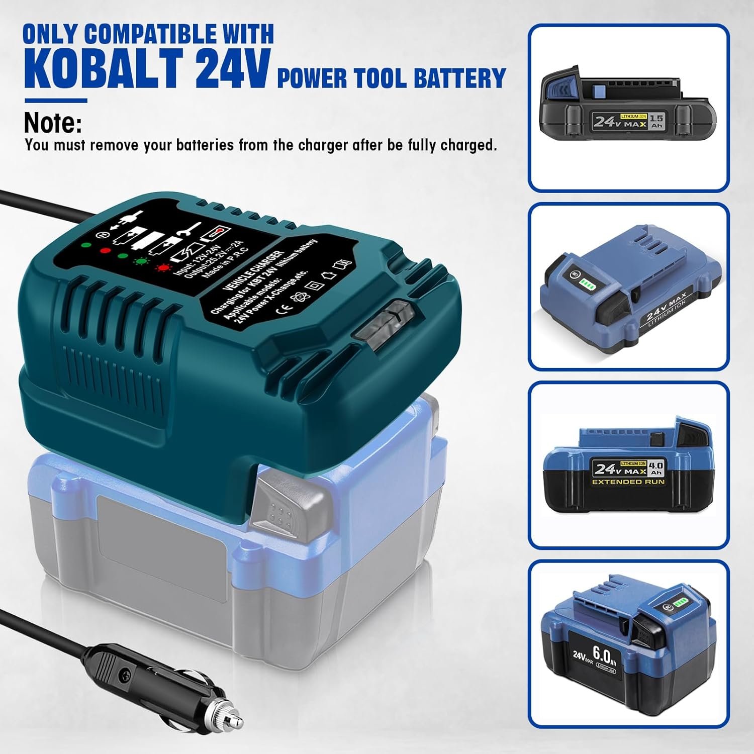 [Compatible with Kobalt 24V Lithium Battery] The mini vehicle charger is compatible with Kobalt 24V Lithium Batteries, but not for any other batteries