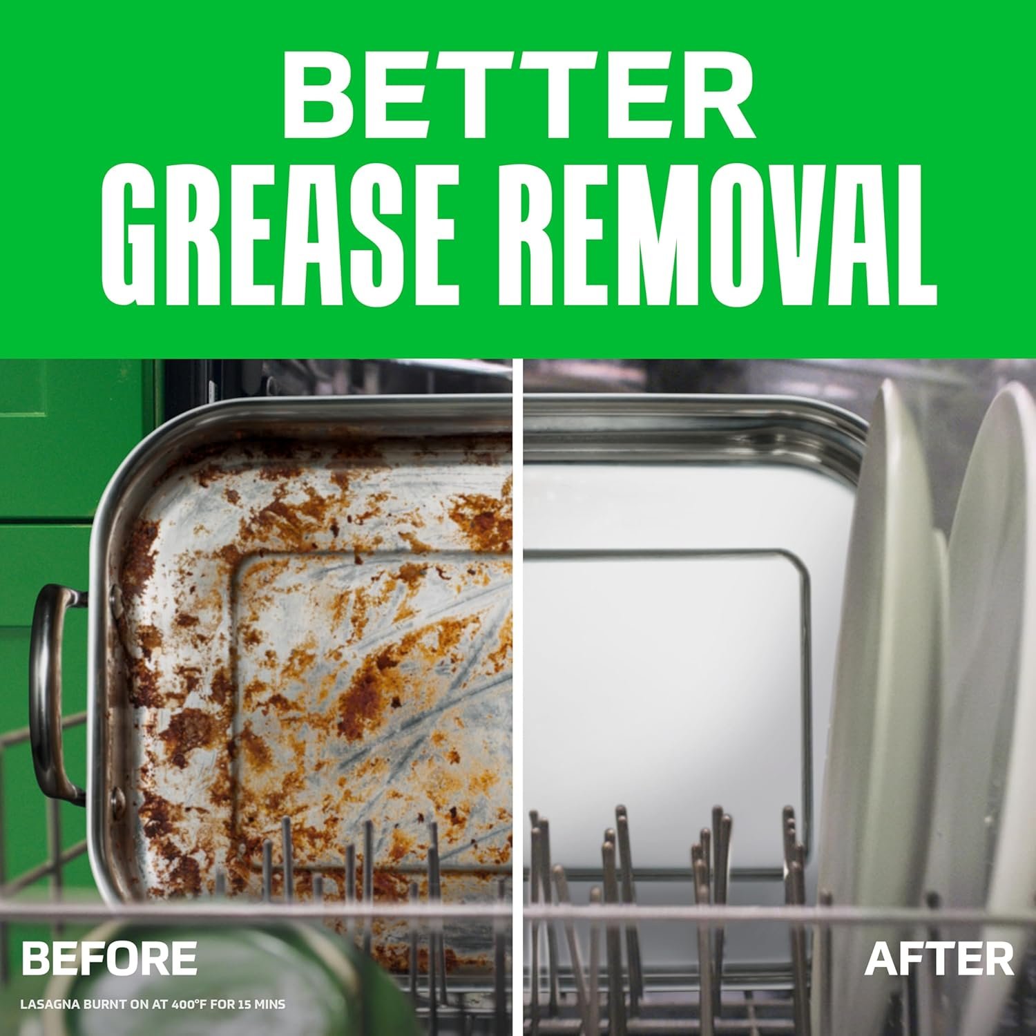 Cascade Platinum ActionPacs dishwasher detergent cleans burnt-on messes in just one wash, with no pre-wash needed.