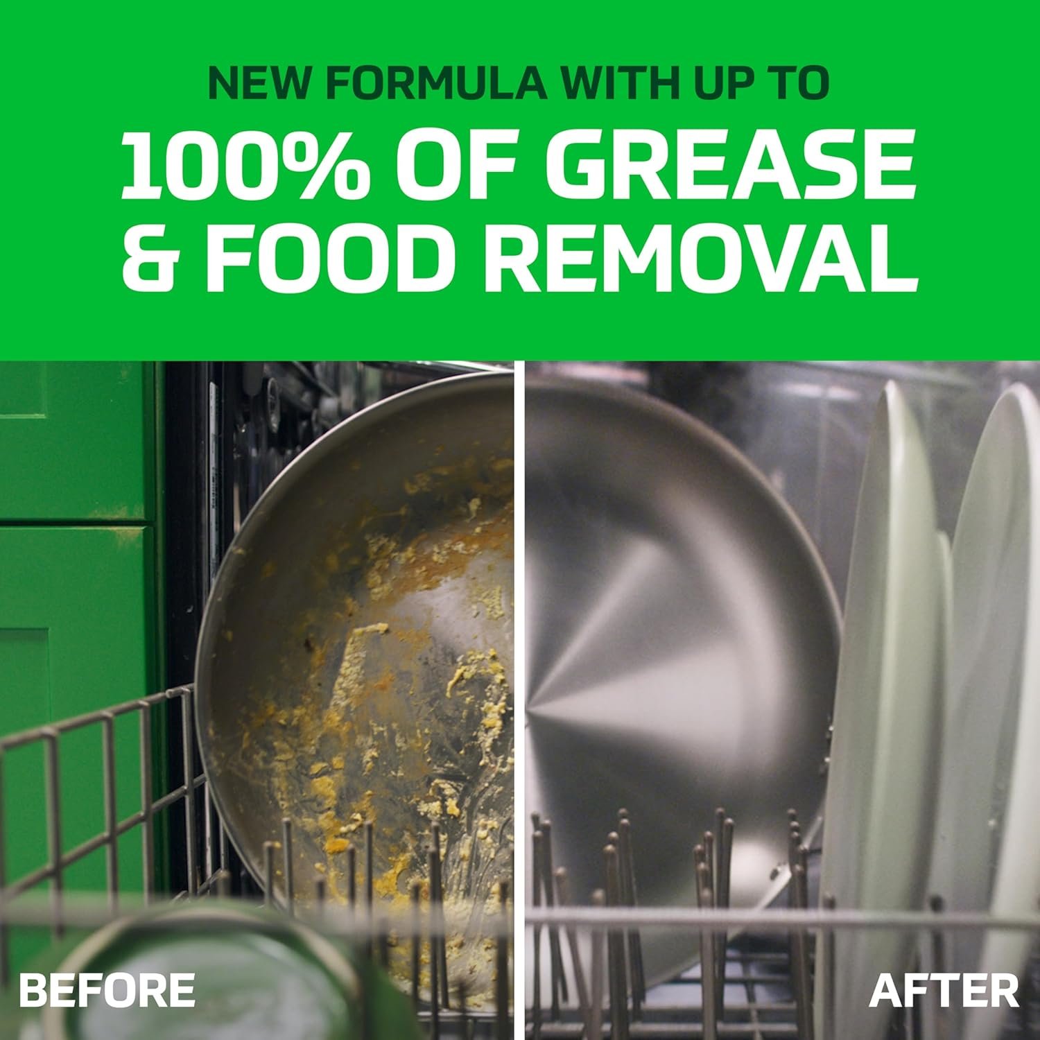 Only Cascade Platinum Plus contains 2X* the Dawn grease fighting power and 2X* the scrubbing power to power through dried on food *Cleaning ingredients vs Cascade Complete ActionPacs