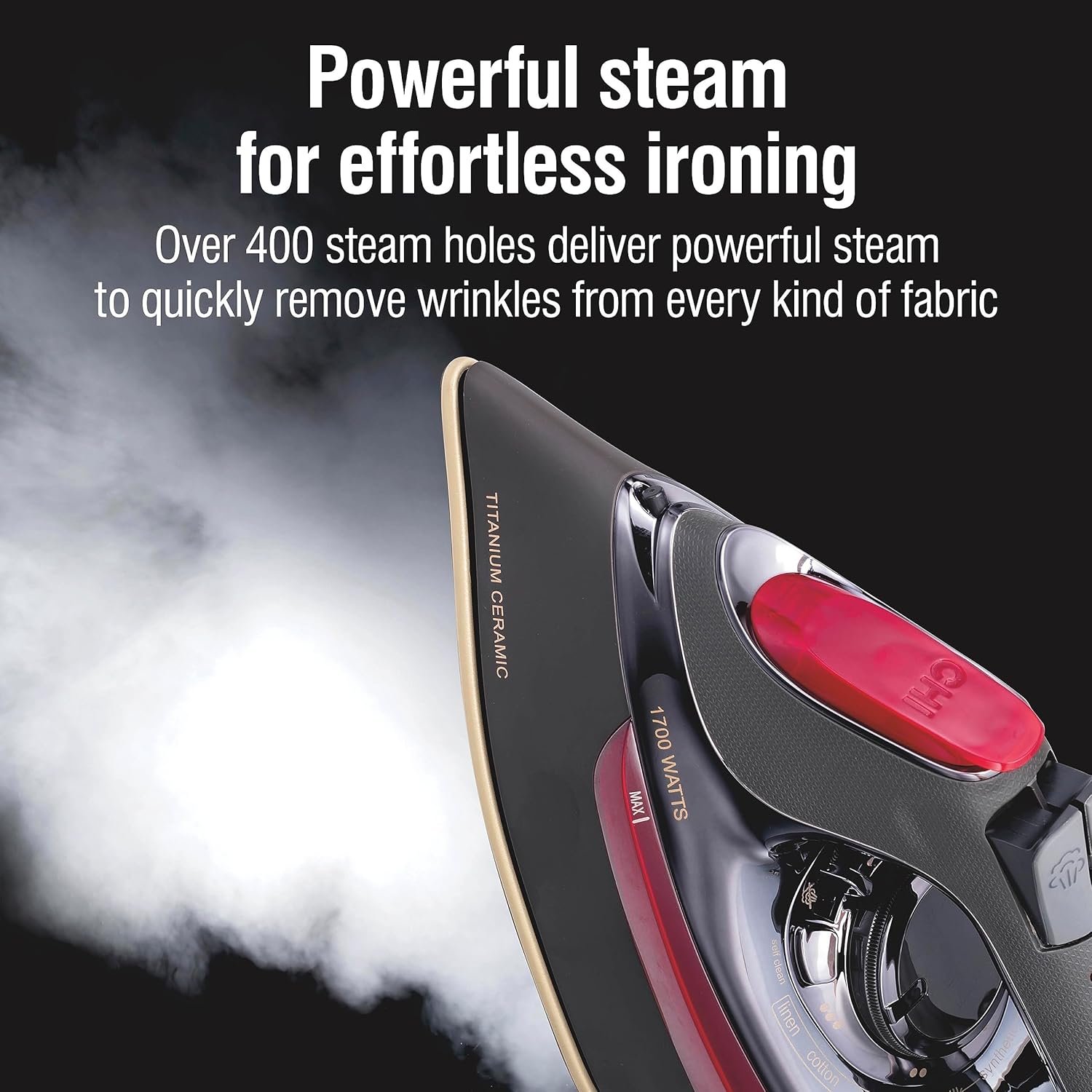 MADE WITH CHI FLAT IRON TECHNOLOGY: This Chi steam iron is designed using the same titanium-infused ceramic soleplate technology that powers CHI’s hair styling tools, including the flagship CHI G2 Flat Iron.