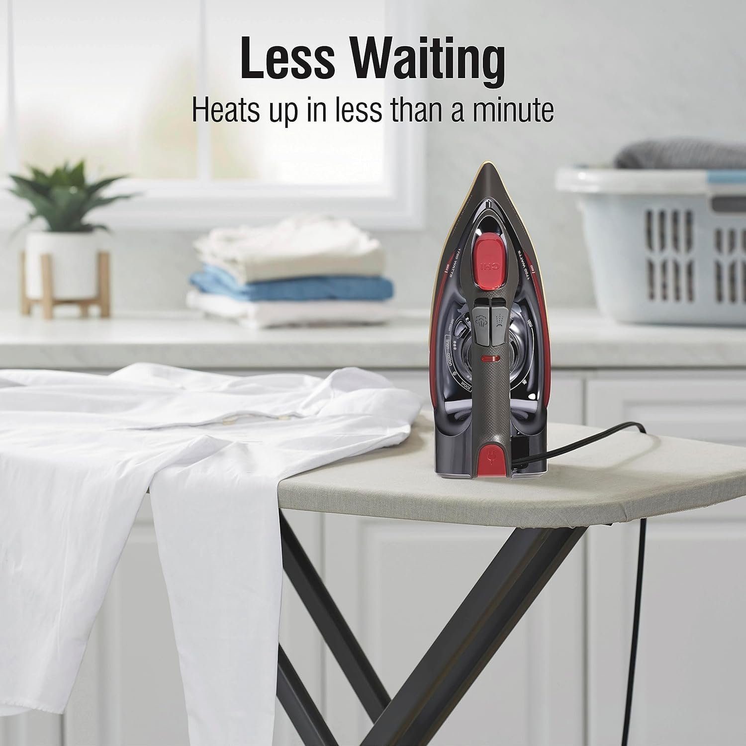 EASY STORAGE WITH RETRACTABLE CORD: This CHI steam iron with retractable cord has an 8 ft. cord that winds up quickly at the touch of a button, making storage simple. Its length makes it easy to reach outlets across the room while ironing.
