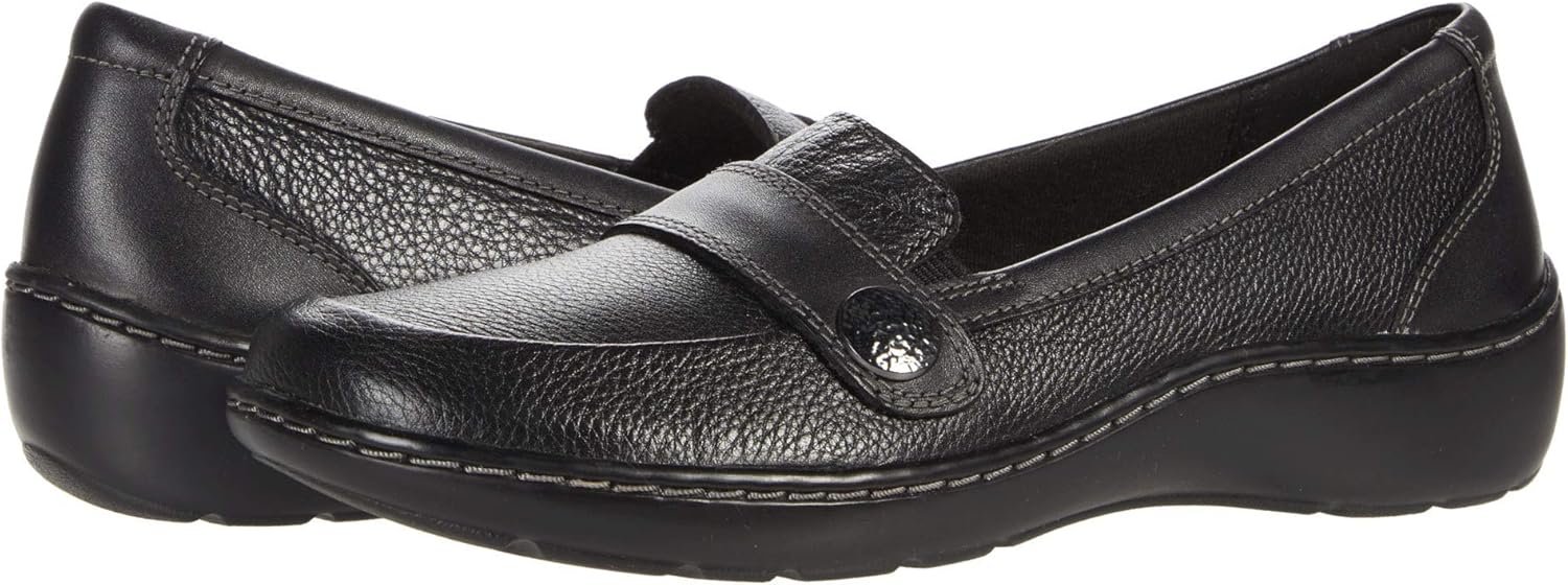 Clarks Cora Daisy Slip on Casual Shoes – Womens. A sophisticated take on casual loafers, these womens casual shoes are easily a closet staple. The Clarks Cora Daisy slip-on loafers is great for barefoot wear, with its moisture-wicking Ortholite footbed. It slides on easily with its slip-on design and hidden elastic gores for a comfortable fit. With a synthetic full-grain leather upper and decorative detailed strap, the Cora Daisy takes any casual outfit up a notch.