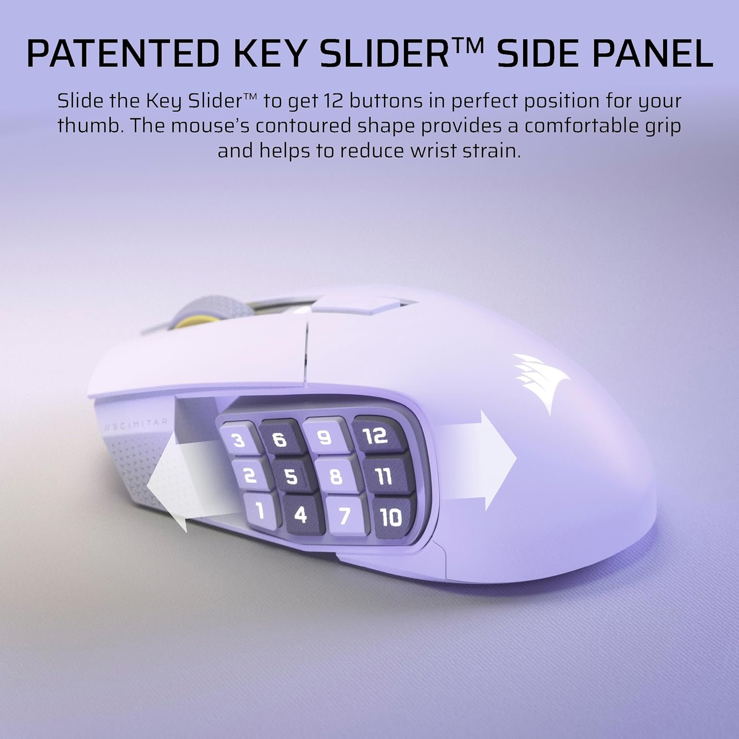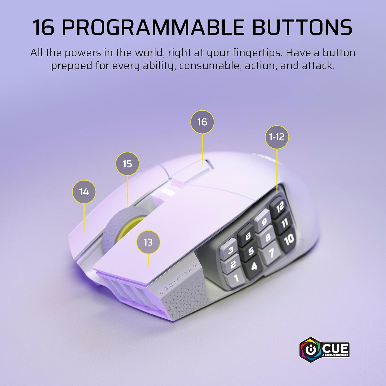 Corsair Scimitar Elite Wireless SE MMO PC Gaming Mouse – 33,000 DPI, 16 Programmable Buttons, Key Slider, Elgato Virtual Stream Deck, 1,000Hz Polling, Up to 150-Hour Battery – White