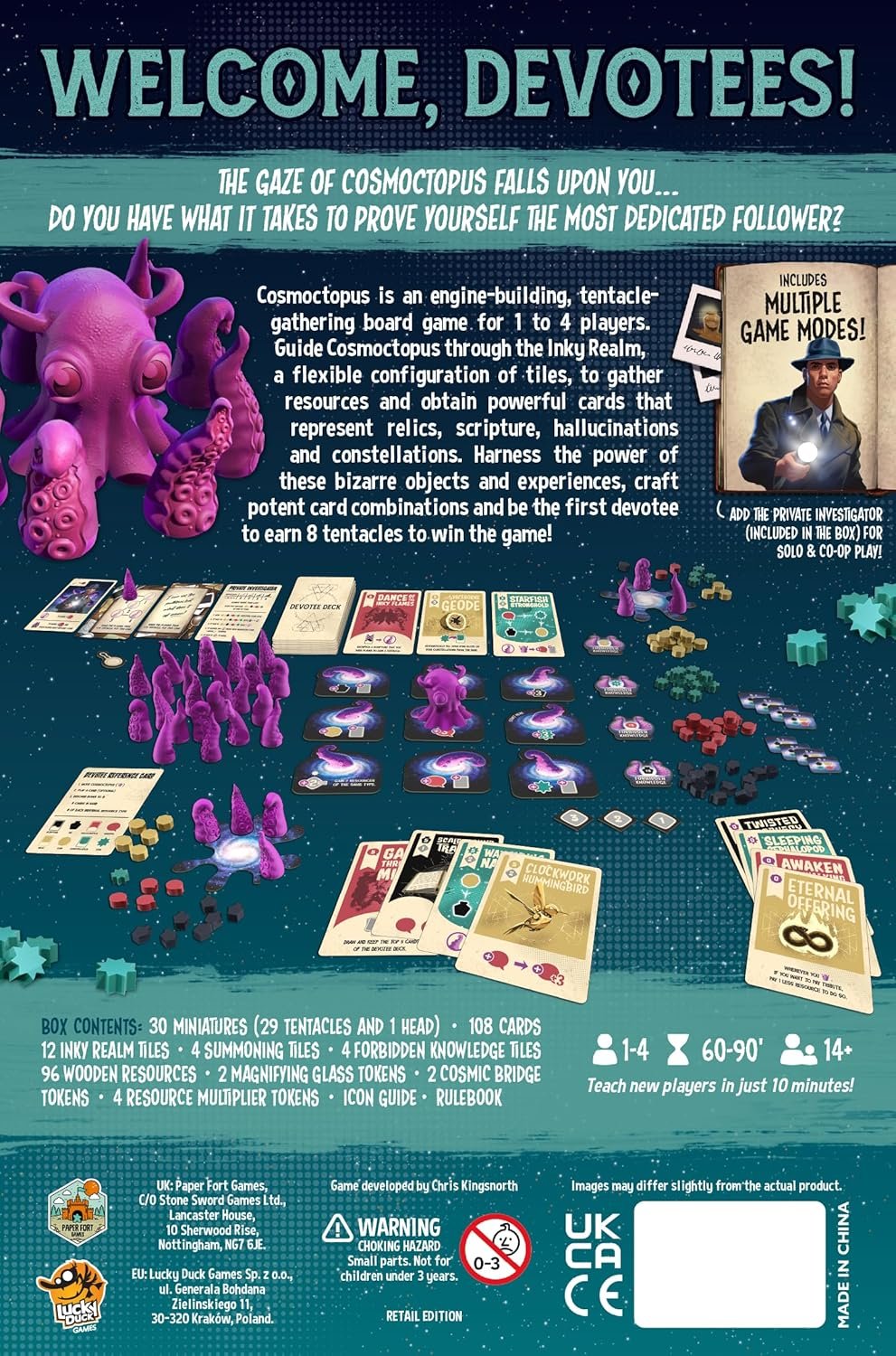 CELESTIAL ENGINE-BUILDING GAME: Immerse yourself in the Inky Realm and gather resources with Cosmoctopus, the tentacle-gathering board game for 1 to 4 players.