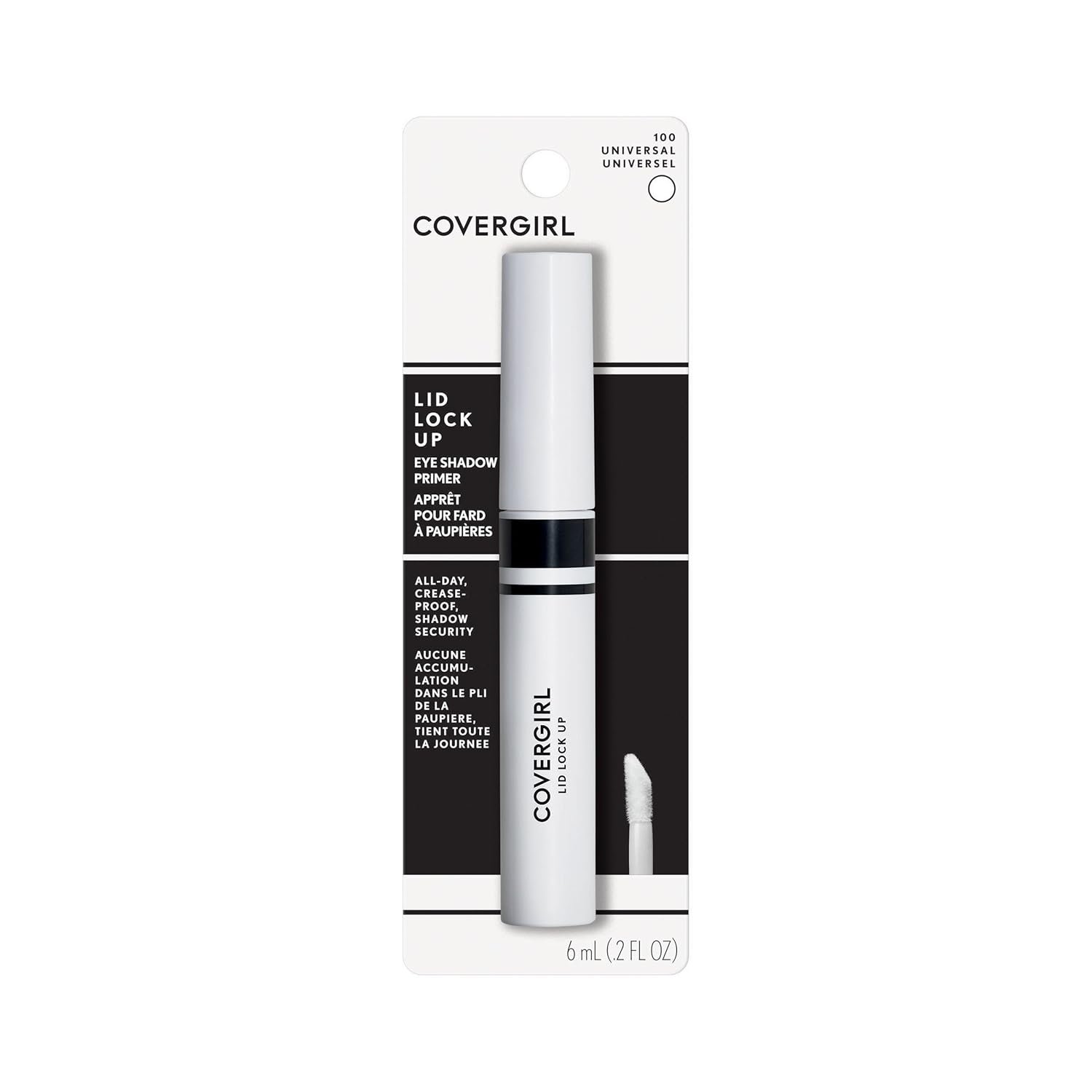 The COVERGIRL Lid Lock Up Eyeshadow Primer is for anyone who needs long-lasting, crease-free eyeshadow. The water-resistant formula will keep your shadow looking fresh and vivid all day without smudging or rubbing off. This transparent eye makeup primer is easy to apply with the handy applicator tip that also helps you dab on just the right amount of product. With this hassle-free eyeshadow primer, it’s easy to make sure your makeup routine starts in full swing.