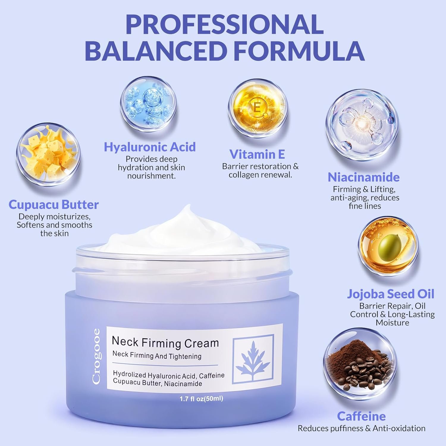 FIRMING AND LIFTING: Crogooe Neck Firming Cream is specially designed for the neck and facial skin. It effectively enhances skin elasticity and firmness, reduces fine lines, and redefines a sharp, sculpted jawline, restoring a youthful radiance to your complexion.