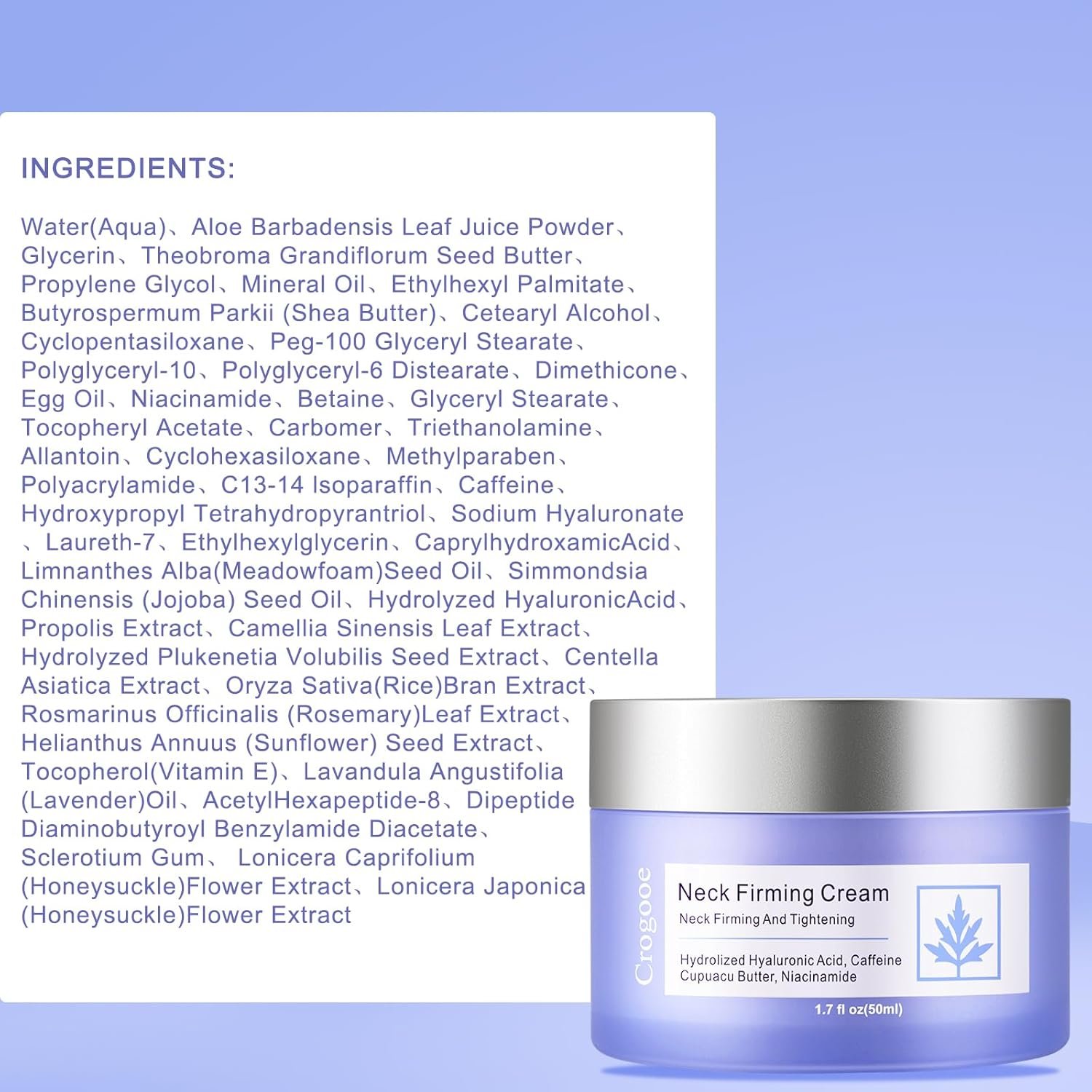 GENTLE ENOUGH FOR ALL SKIN TYPES;Crogooe neck firming cream is free of harsh ingredients, making it perfect for even sensitive, dry, or oily skin. Use it on your face, neck, chest, and jawline. Apply daily with a massaging motion for maximum benefits.