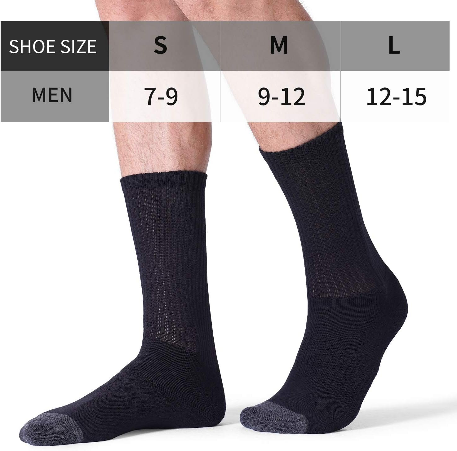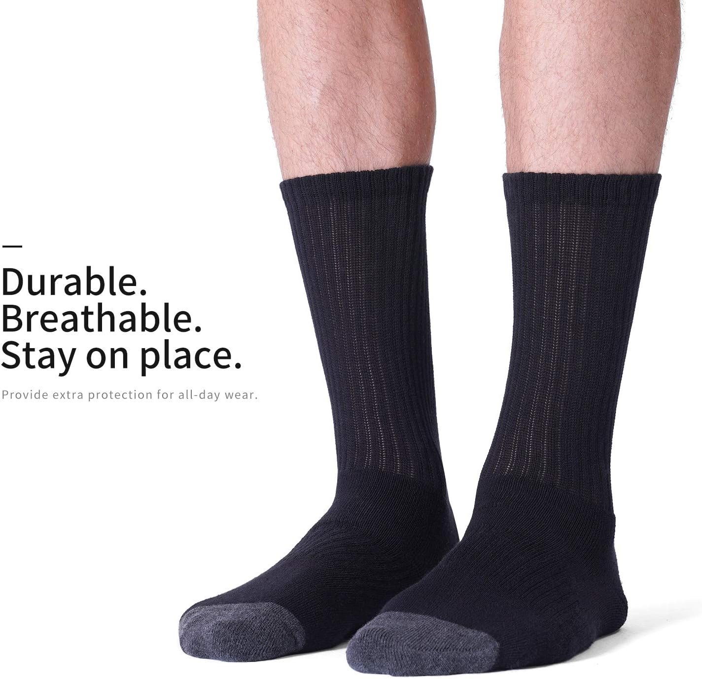 CS CELERSPORT 6 Pack Men’s Cotton Athletic Crew Socks Full Cushioned Work Boot Socks