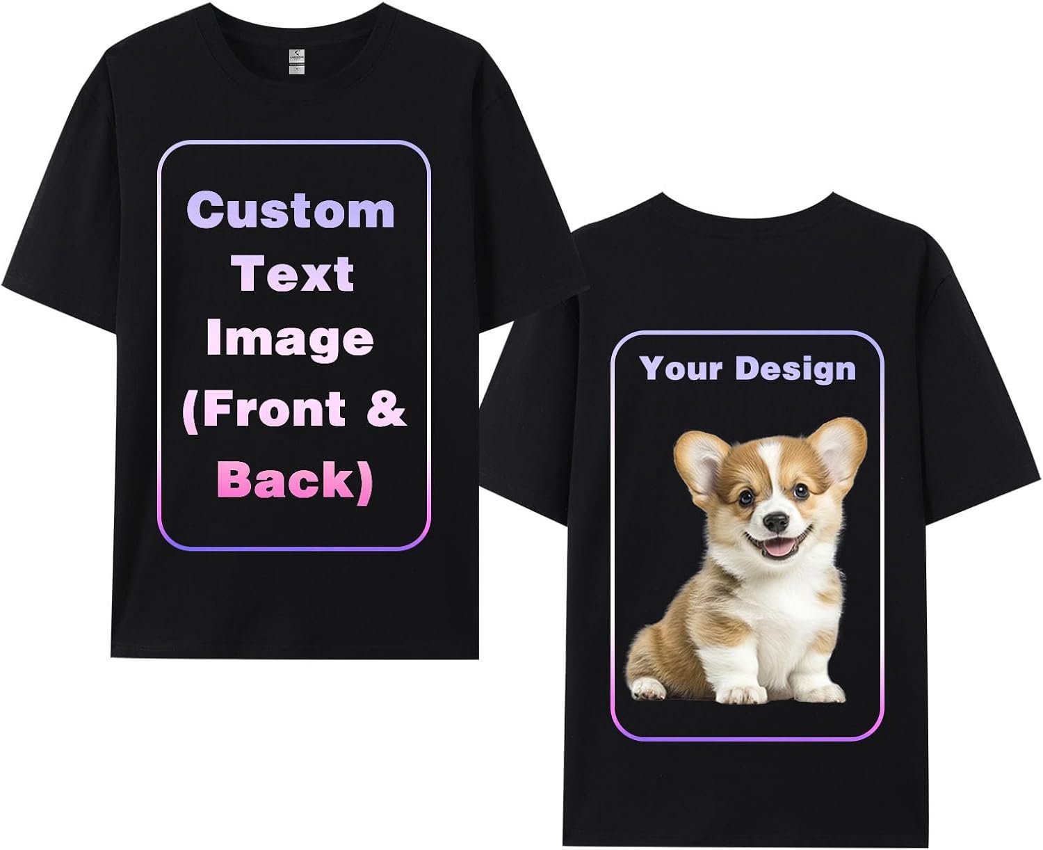 Custom T-Shirts Add Photo Logo Text for Men Women Personalized Custom Tee Shirt Create Your Own Shirt, Black/White