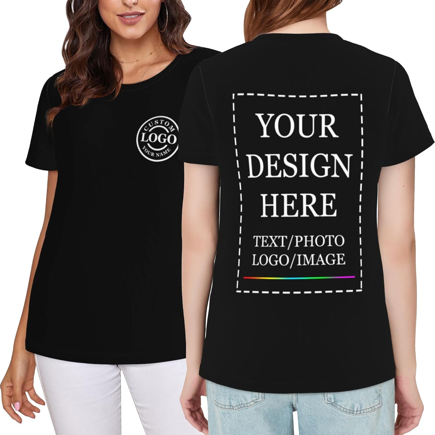 Custom T Shirts for Men Women,Personalized Shirts with Photo Logo Text,Customized T-Shirt for Front & Back Print