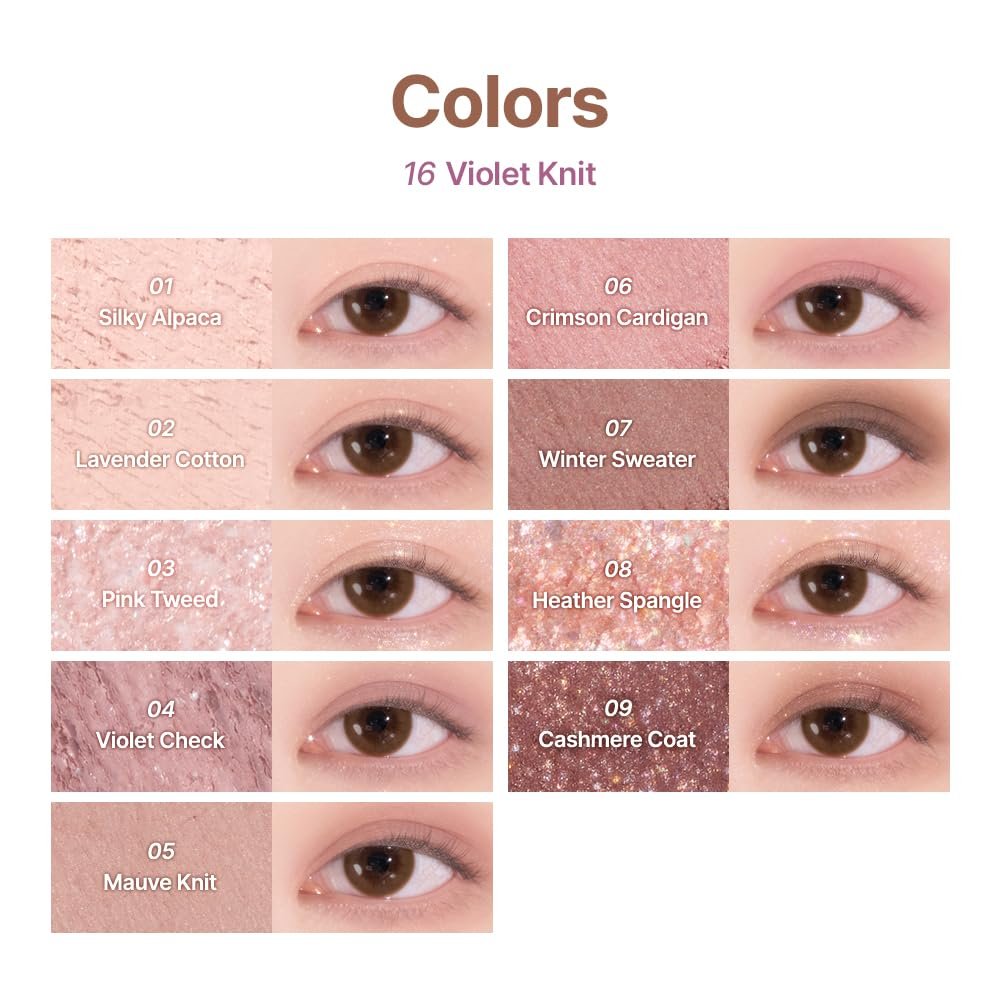 dasique Shadow Palette #16 Violet Knit l Vegan, Cruelty-Free l 9 Blendable Shades in Smooth Matte and Shimmer Finishes with Gorgeous Pearls