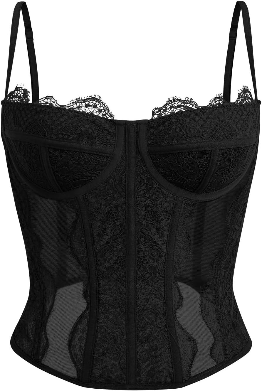 Dealmore Corset Tops For Women Going Out Lace Mesh Date Night Fall Fashion Outfits Clothes Crop Cute Party Strap Tank