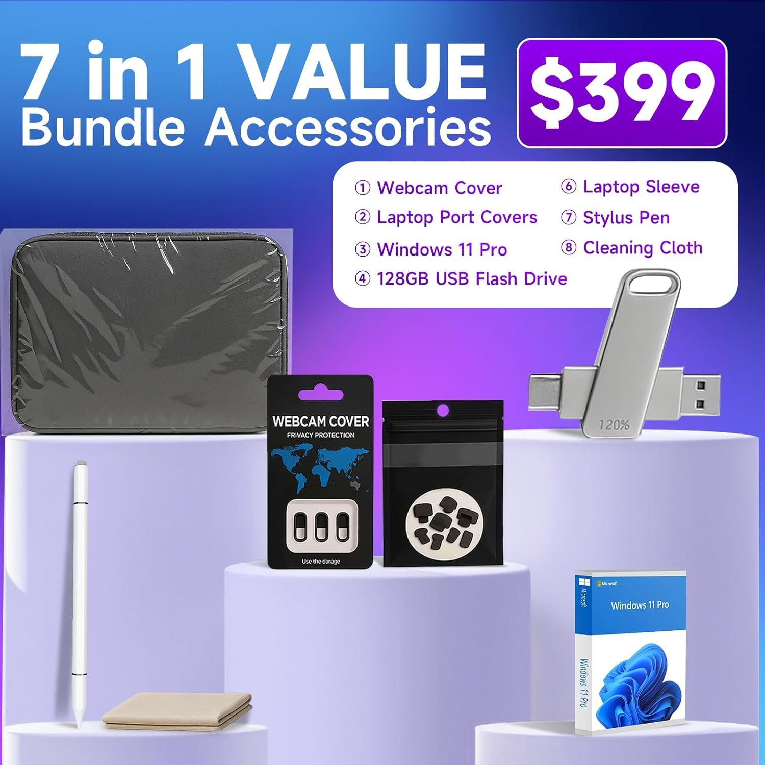 【💼Slim & Travel-Ready Business Laptop】Weighing just 4.4 lbs and only 0.78” thin, this Dell laptop is lightweight yet durable—ideal for business travelers and daily commutes. Fast-charge to 80% in ~60 mins with up to 10hrs battery life. Comes with a premium 6-in-1 accessory kit: Stylus Pen, Webcam Cover, 128GB USB Flash Drive, Laptop Port Covers, Laptop Sleeve, and Cleaning Cloth.