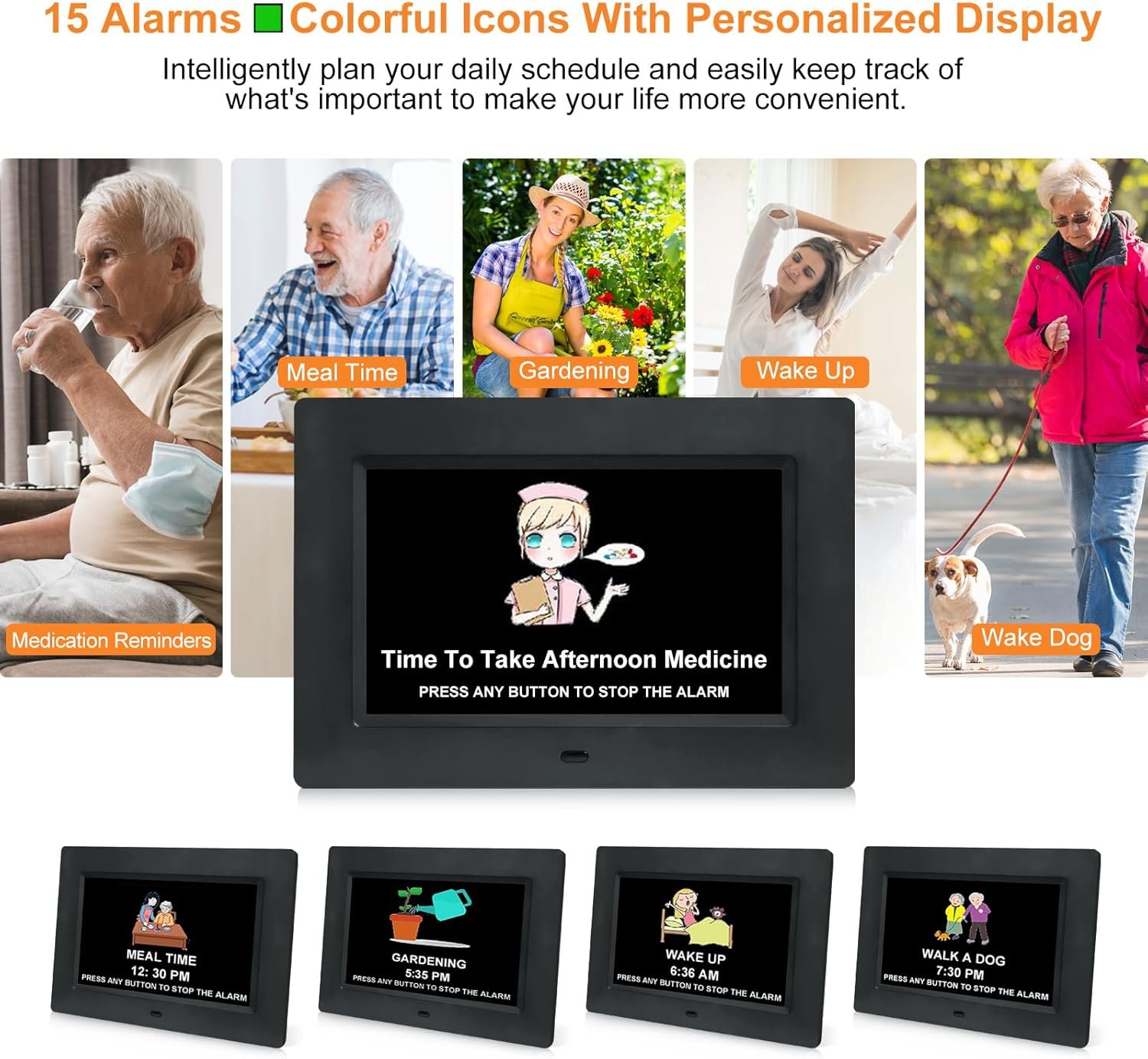 🎁【Perfect Gift for Seniors】 The SSINI digital clock is the perfect gift for seniors and their families. It is intentionally designed to exclude sensitive words like dementia, Alzheimer’s, or memory loss, making it suitable for anyone. This clock helps seniors remember the day, ensures important tasks are scheduled on time, and provides a more comfortable and secure living experience. Additionally, it also doubles as a digital photo frame, allowing you to share and display precious photos and memories with your loved ones