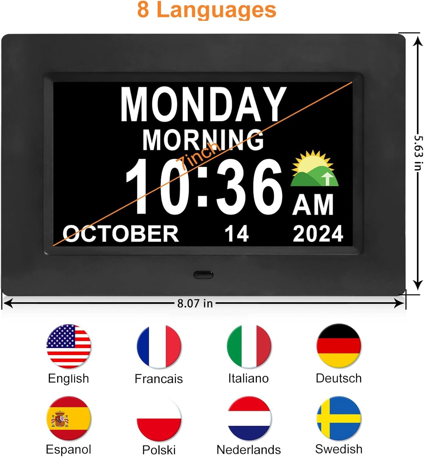 ⏰【12 Alarms and 3 Sets of Medication Reminder】The dementia clock can be set with 12 daily alarms and 3 sets of medication reminders. Reminding us of daily meetings, showers, medications, clinics, dog walks, etc., helps us avoid missing any important events. The digital clock also supports 8 different languages