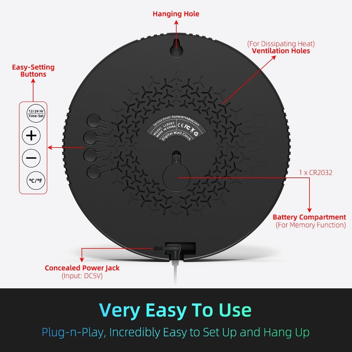 [EXTREMELY USER-FRIENDLY] — This plug-in wall clock is incredibly easy to set up, and the 10Ft long USB Cable allows you to hang it wherever you desire.