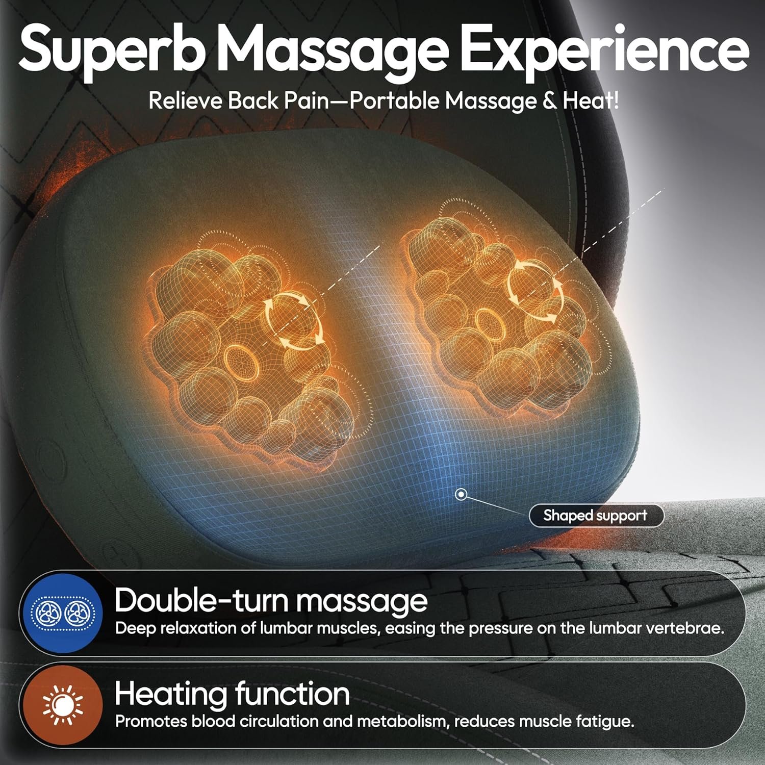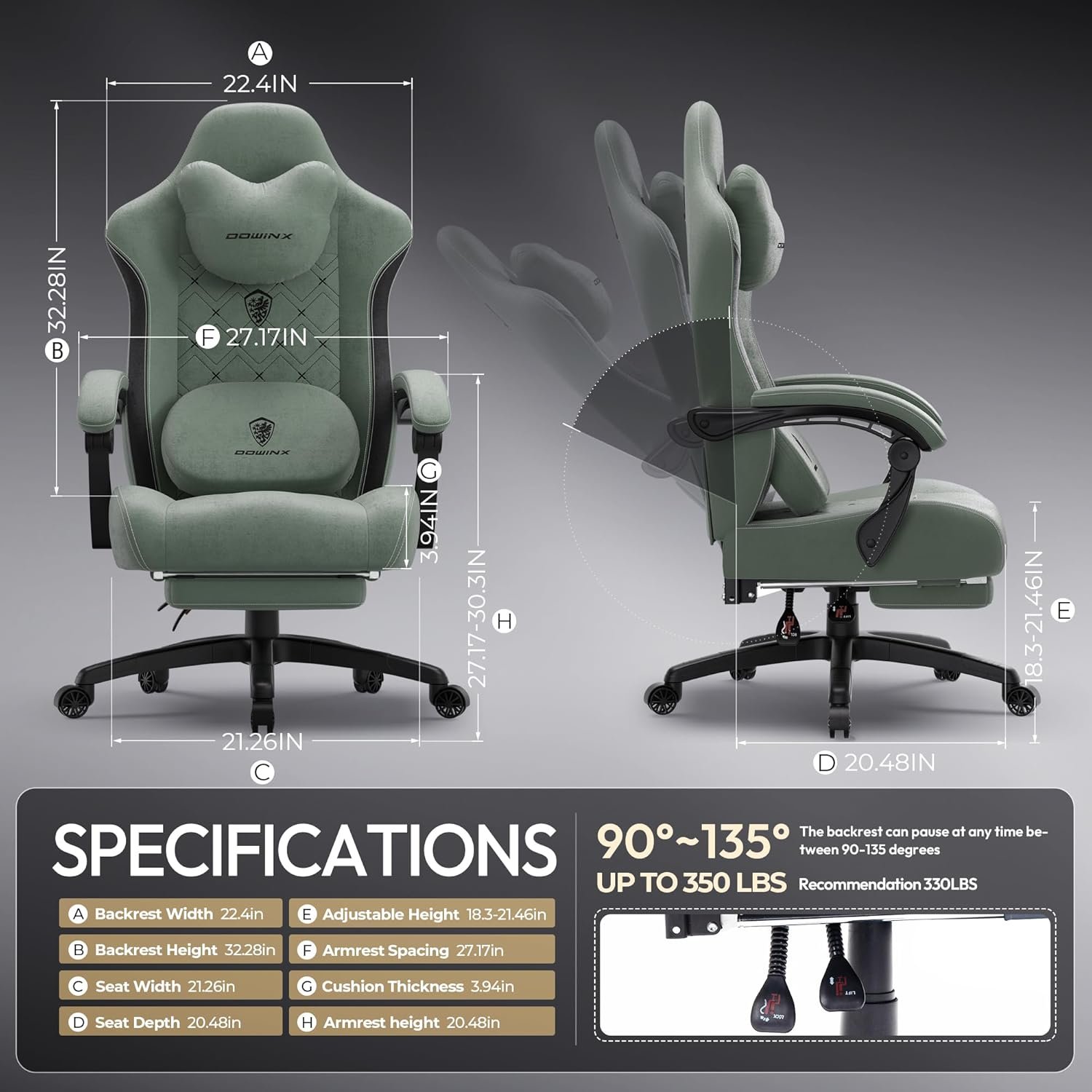 【Heated Massage Gaming Chair for Long-Lasting Support】Created for those who spend extended hours sitting, the Dowinx massage chair helps ease tension in the lower back with simulated fingertip pressure and rhythmic kneading movements that promote deep relaxation. The adjustable warmth function encourages circulation and keeps you cozy during quiet nights or solo moments. Its innovative reversible padding lets you switch to a plush, gentle surface when not using the massage mode—ideal for gaming marathons, office use, or casual lounging.