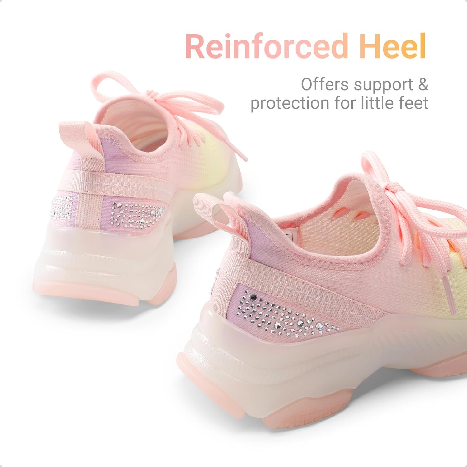 Make sure your child can play in style and comfort with these kids’ shoes that stand out with a dreamy ombre glow and colorful jelly outsole. These sneakers look great and are perfect for play thanks to their slip and wear resistance. These girls’ shoes feel comfortable to wear due to their soft, easy on the feet materials.