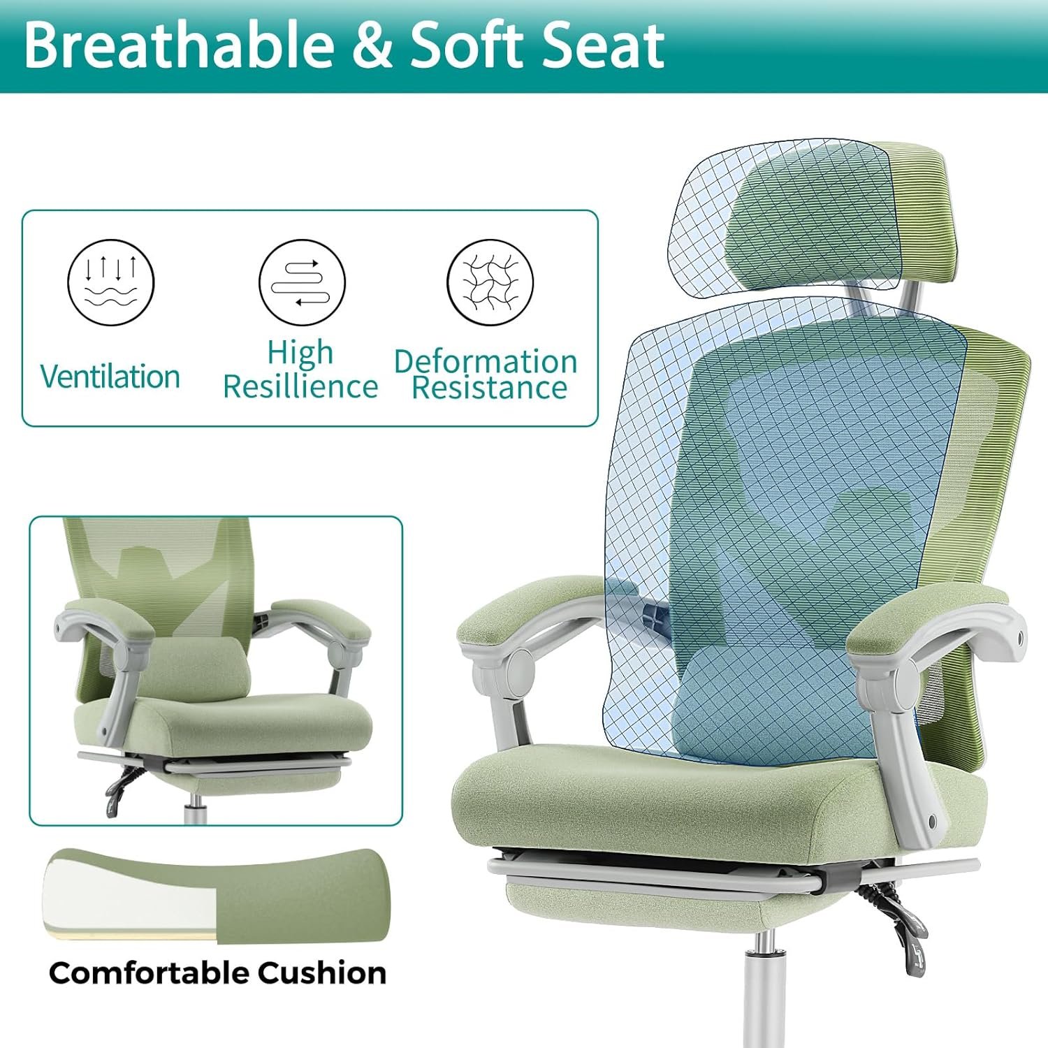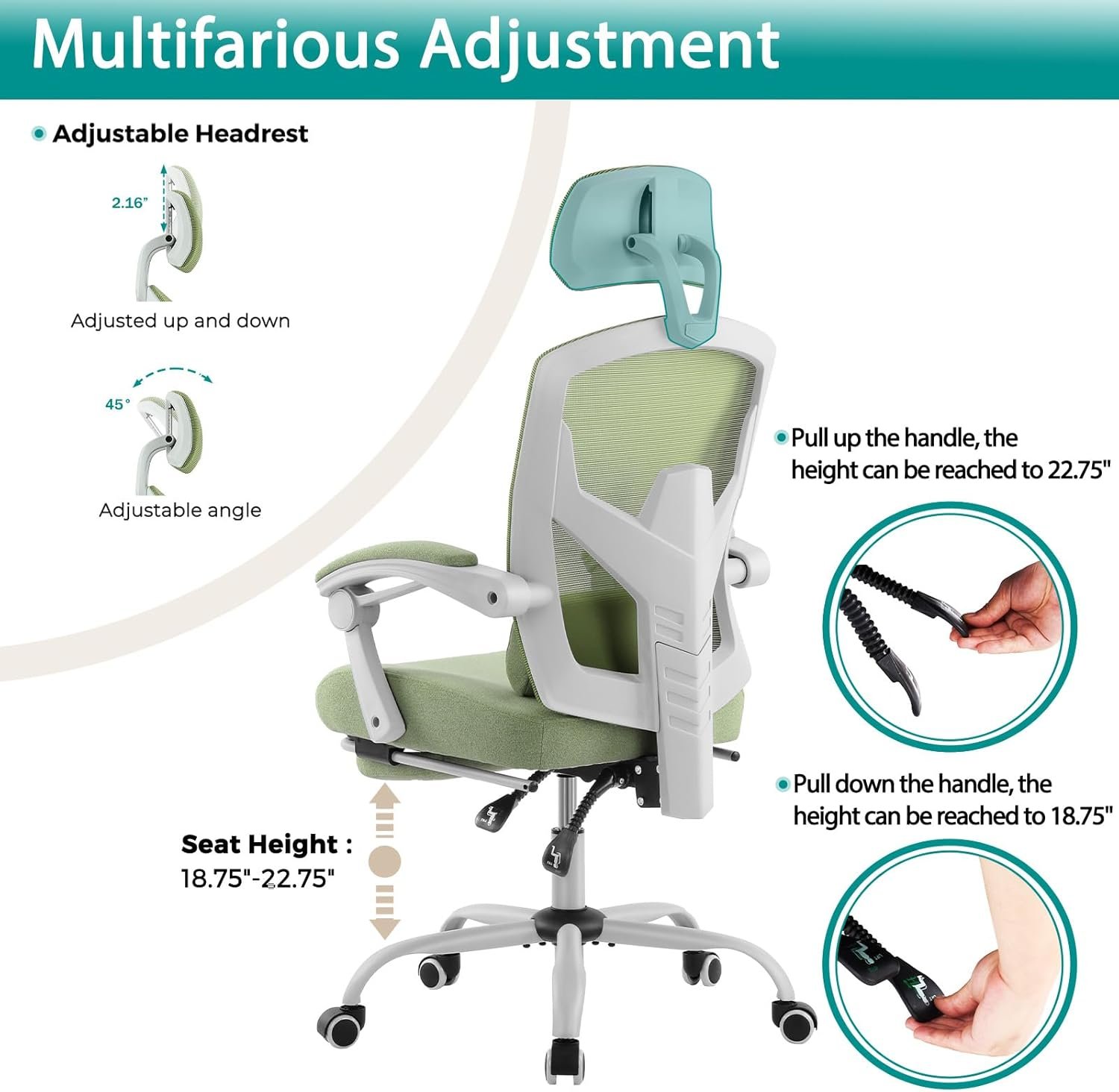 【Stable & Secure structure】Our swivel chair with 5-point base uses the same material as the built-in metal frame. The strong 5-point base ensures excellent durability and stability with the maximum weight up to 275 lbs. Featuring a high-quality 360-degree swivel caste, this desk chair allows you to run smoothly as you want, whether on wooden floors, carpets or other flooring.
