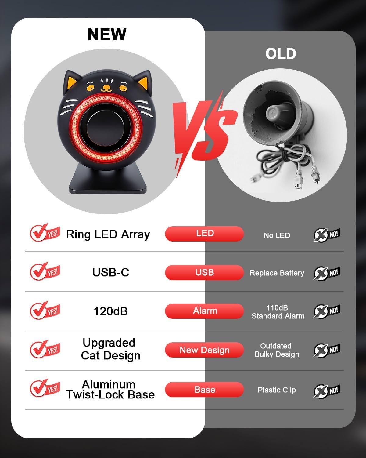 Upgraded ring-shaped strobe design:The newly upgraded ring-shaped strobe light delivers 360° high-intensity illumination, creating 2X more visible warning signals. More eye-catching and brighter than standard single-point lights for maximum theft deterrence
